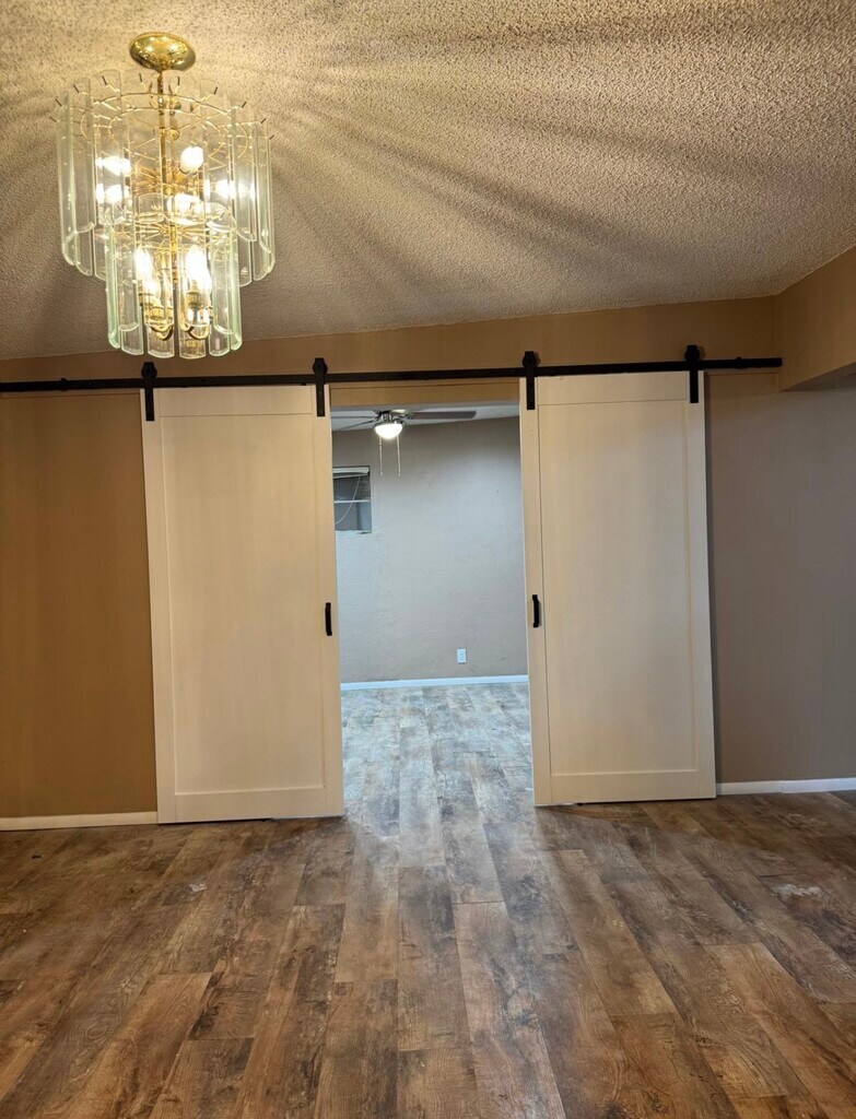 4-Bedroom Home in Prime Tucson Location. Freshly updated 4 bed, 2 bath home that blends comfort with clean, modern touches. Step inside to a light, airy layout accented by brand-new ceiling lights, a statement chandelier, and upgraded ceiling fans for year-round comfort. A stylish sliding barn door adds character and function, and the whole interior has been freshly painted in a neutral palette to make move-in a breeze. Four well-proportioned bedrooms offer flexibility for sleeping, office, or hobby space, while two full baths keep mornings easy. The kitchen and common areas flow nicely for daily living and entertaining, and the private backyard is ready for your outdoor setup. Located on a quiet residential street with convenient access to everyday essentials and commuting routes. Recent upgrades: new lighting package (ceiling lights + chandelier), new ceiling fans, new barn door, and fresh interior paint