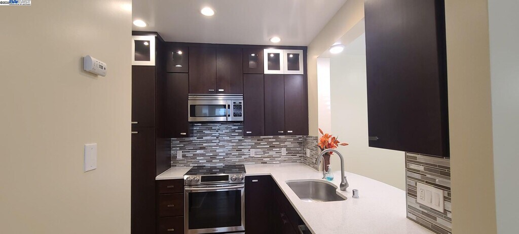 Make yourself at home in this spacious ground floor condo in Dublin. This highly desirable unit offers 1,080 sqft. of living space with 2 bedrooms,2 bathrooms,a 1 car garage and many expected amenities. A great floor plan creates a welcoming atmosphere for entertaining or daily life. Flooring consists of laminate wood floors throughout. The kitchen includes white granite counter tops,large sink and stainless steel appliances including: electric range/oven,refrigerator,microwave and dishwasher. The airy bedrooms are perfect for getting a good night's sleep. Closets throughout the house are equipped with custom organizers. There is large patio off the living room and a small patio off the master bedroom. Additional amenities: 1 car garage and 1 reserved parking space,washer & dryer in unit,air conditioning,heat,fireplace,access to community pool and tennis court! Owner covers HOA dues. Water and trash included. *INFORMATION IS DEEMED RELIABLE,BUT IS NOT GUARANTEED.