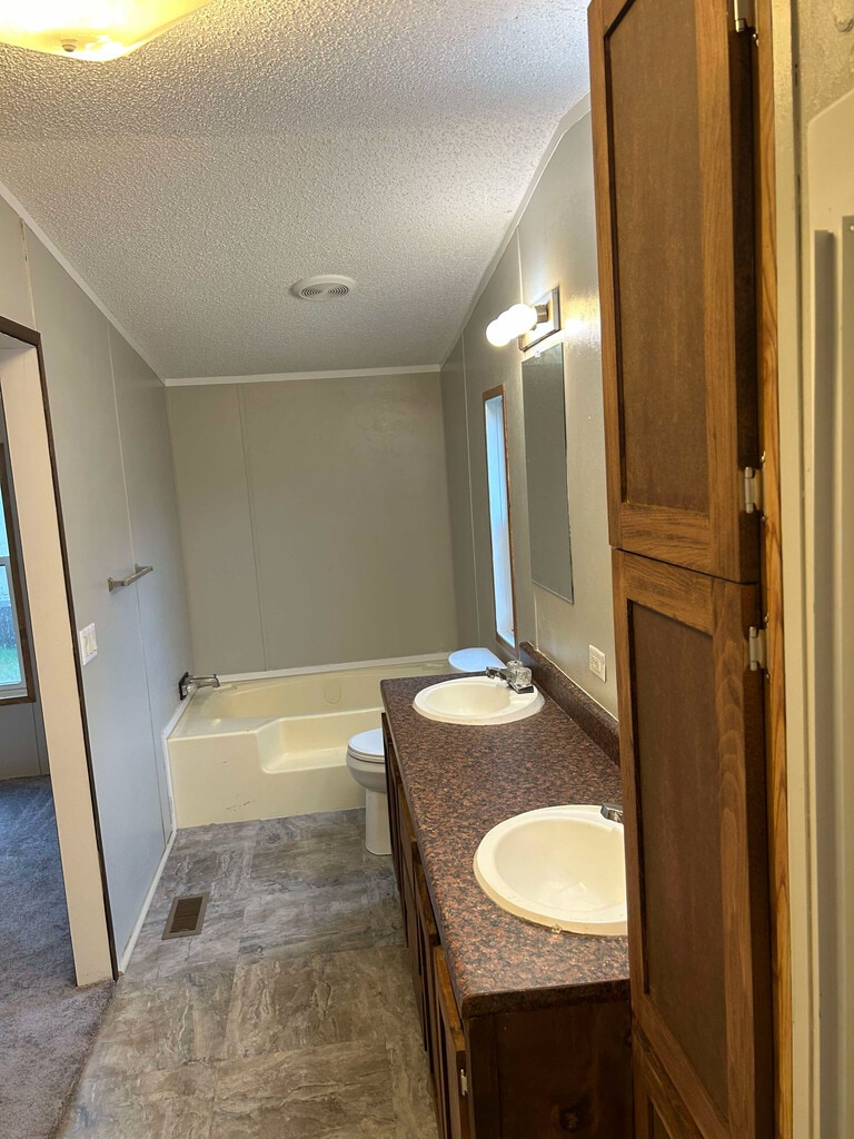 3 bedroom 2 bath mobile home. extra spacious being 18 wide custom built with a coat closet, a built in desk and pantry. there is a bedroom near the master if you have a little that you need to keep close and dear. there is a linen closet in the master bath. it has a separate shower and soaking tub.