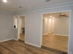 Convenient to shopping & interstate. Centrally located with easy access to interstate. Freshly painted interior. New wood-look vinyl plank flooring in main living areas. Living room with ceiling fan. Family/bonus room with built-in shelves & decorative fireplace. Kitchen/dining combination. Kitchen includes stove,refrigerator & pantry. Main suite has attached bath with shower only. Large guest bedroom with two closets. Laundry room located off family/bonus room. Screened porch. Fenced backyard. Small dogs considered with owner approval - no cats. No smokers. Lawn service included in rent.