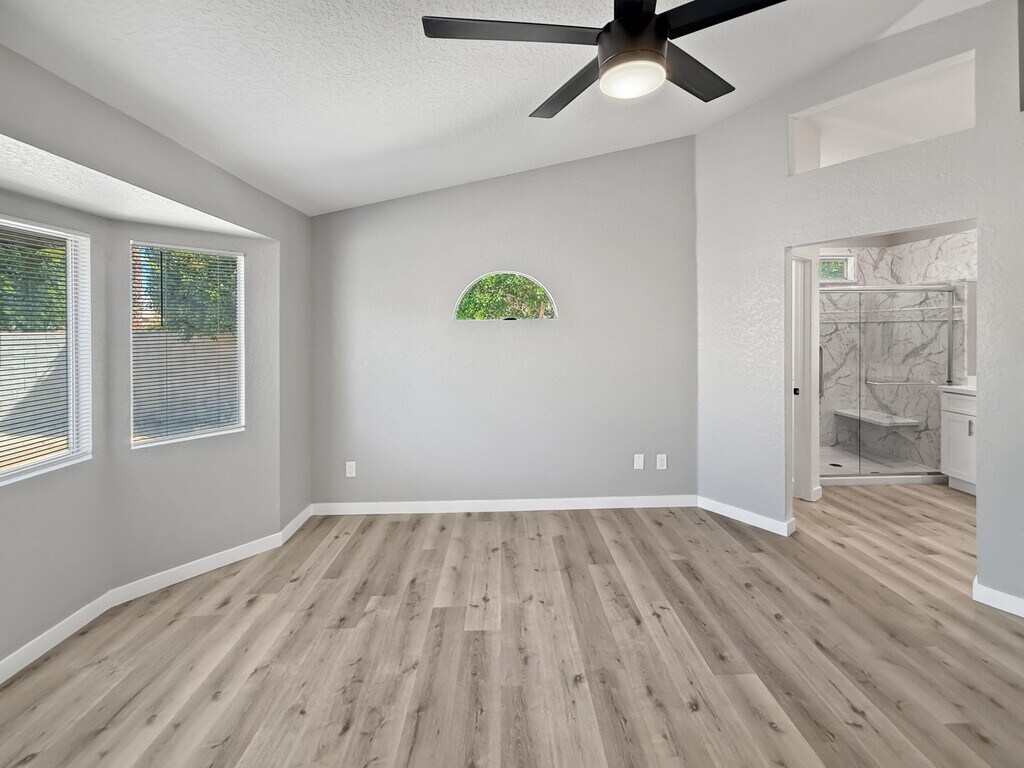 Beautifully Renovated Home with Included Electricity Move-In Ready! Welcome to this freshly remodeled 3-bedroom,2-bath home in Cathedral City offering modern style,comfort,and value. Inside,you'll find an open floor plan with brand-new luxury vinyl flooring,recessed lighting,and a bright kitchen featuring white cabinetry,quartz countertops,and stainless-steel appliances. The spacious living area includes a cozy fireplace and large windows for plenty of natural light. The primary suite offers an updated bath with dual sinks,quartz counters,and a marble-style walk-in shower with built-in bench and grab bars for added comfort. Key Features: Electricity included in the monthly rent (tenant pays only for water and gas; overage applies if usage exceeds solar production) Landscaping service included Modern kitchen and bathrooms Two-car attached garage and low-maintenance desert landscaping Convenient location near Panorama Park and minutes to downtown Palm Springs This home offers a perfect blend of modern design and practical living with low utility costs and minimal upkeep ideal for long-term tenants looking for comfort and efficiency.