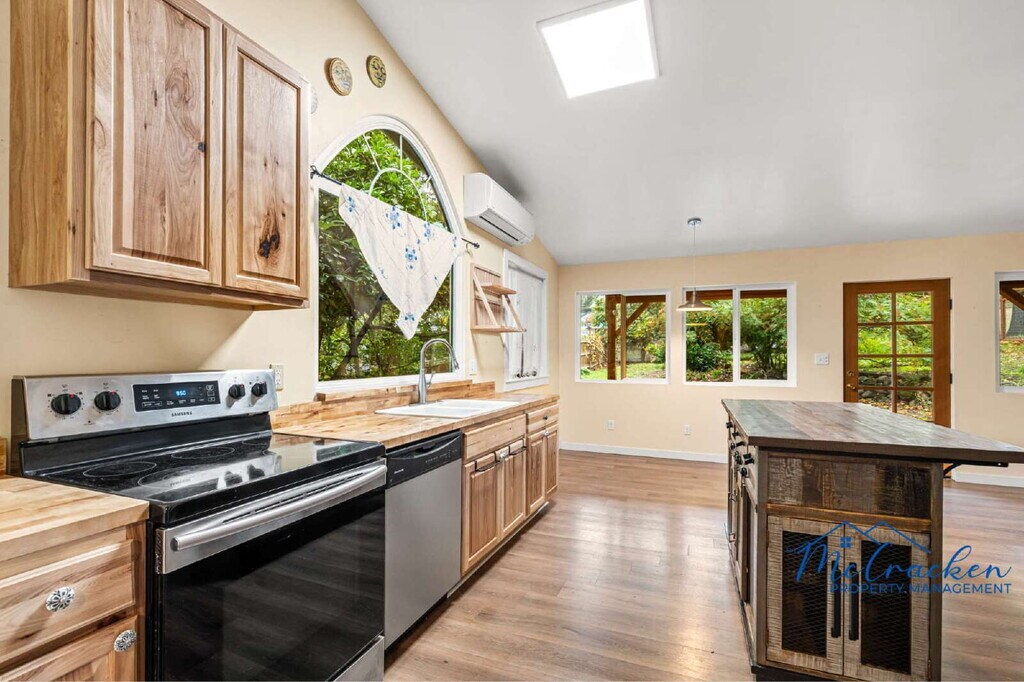 Welcome to 698 Ashland St! This beautiful light filled 3-bedroom, 2-bath farmhouse offers 1,522 sq. ft. of inviting living space on nearly a quarter-acre lot. Built in 1900, the home blends classic Ashland character with modern comfort features, including efficient mini-split heating and cooling throughout. With abundant off-street parking and a private backyard, this home provides peaceful living just minutes from the heart of downtown Ashland. Property Highlights - 3 bedrooms, 2 bathrooms, 1,522 sq. ft. - Climate Control: Modern, efficient mini-split systems (4 units) for both heating and cooling. - Parking: Ample off-street parking and a long driveway. - Bathrooms: Lovely clawfoot bathtub in one and a shower in the other. - Washer/ dryer hookups - Outdoor Space: Expansive lot with a large patio or deck and a generous garden or backyard space. There’s a large public field off the back yard through a gate for easy access to more space for your kids or your pup to run off some energy. - Keypad lock for convenient entry. Prime Location - Conveniently located near downtown Ashland, parks, and cultural attractions - Easy access to walking and biking trails - Close to local sports facilities and community recreation - Enjoy proximity to Ashland’s shopping, dining, and vibrant arts scene Lease & Financial Details - Available: Now - Lease Term: 11 months, then month-to-month - Rent: $2500/month - Security Deposit: $2500 (increased by $500 per pet) - Well behaved pets welcome with increased security deposit - Tenant pays utilities - Owner provides yard maintenance - No smoking Additional Details - Built in 1900 - Approximately 10,000 sq. ft. lot (nearly ¼ acre) - For inquiries or to schedule a viewing, contact 541-631-4090Stove