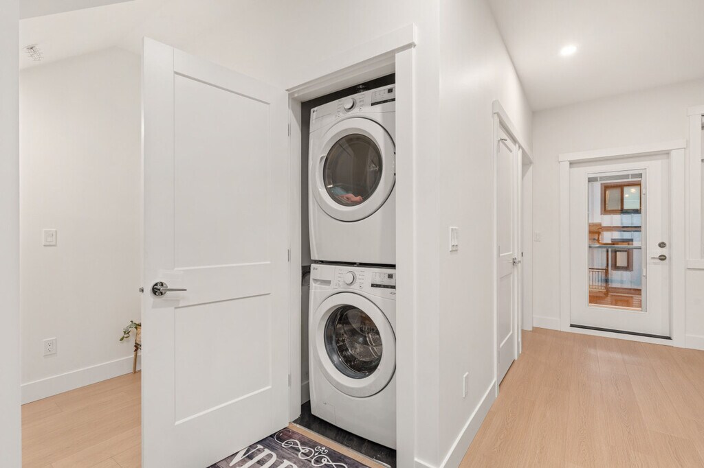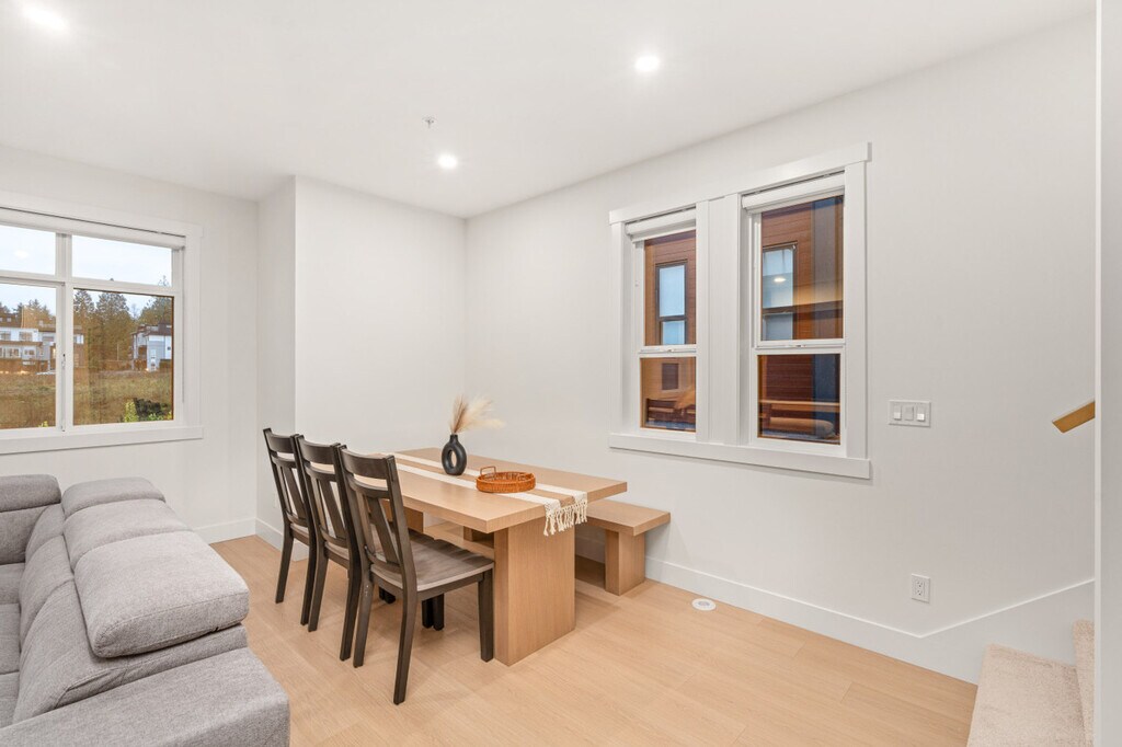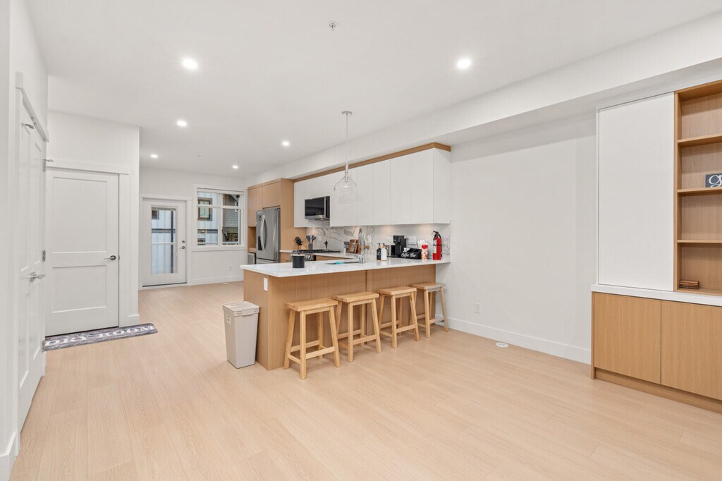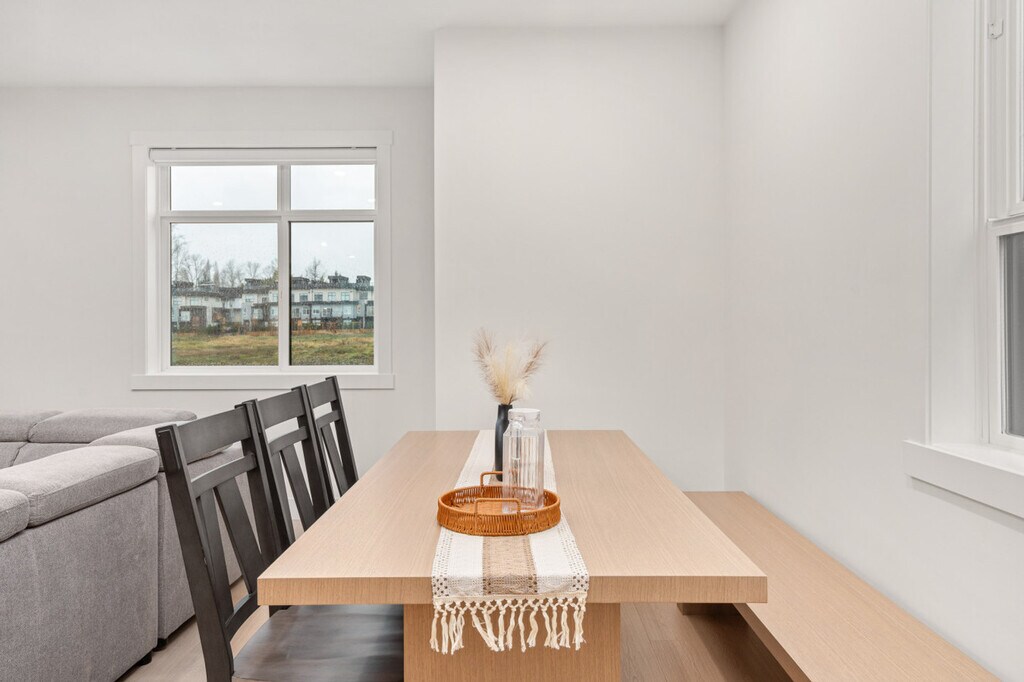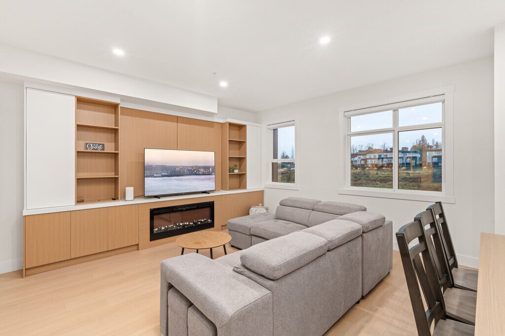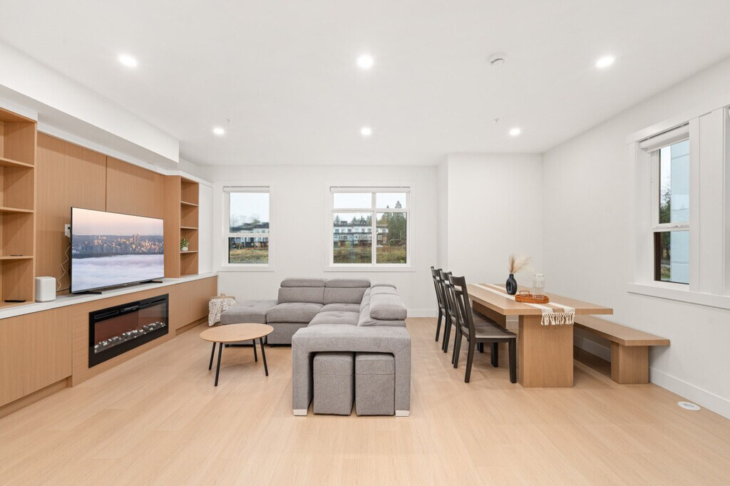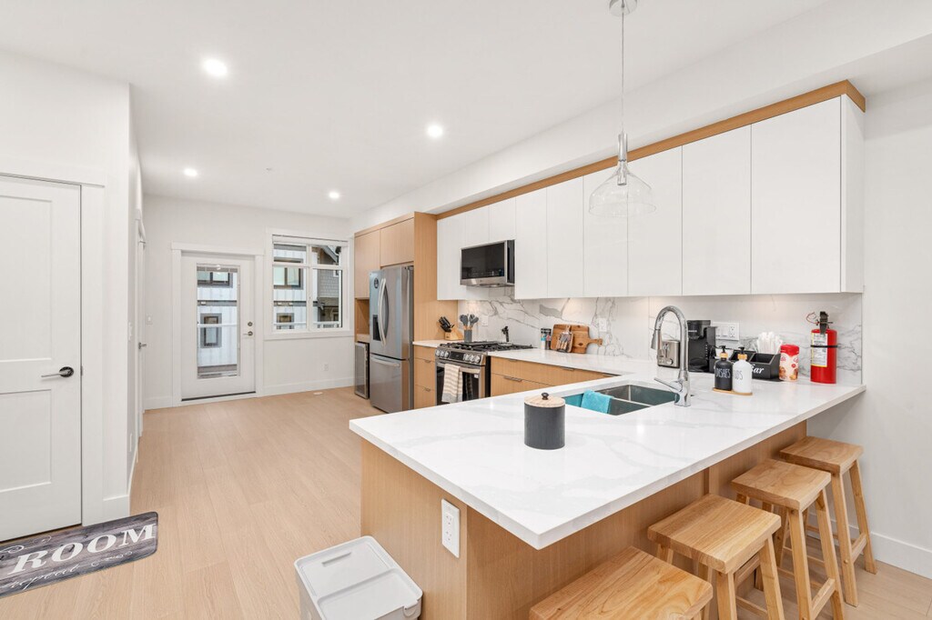 Feel at home in this stylish and spacious 3-storey, 3-bedroom townhouse in the heart of Langley, designed for comfort, convenience, and modern living. This bright home features an open-concept layout, a designer kitchen with island seating, a cozy living area with a fireplace, a separate dining area with seating for 6, and in-unit laundry. The fully equipped kitchen has a large island and bar seating. The primary bedroom features an en-suite bathroom, walk-in closets, and a private balcony. This home includes a private entrance and an attached garage for 2 vehicles plus free street parking. A large private rooftop patio is perfect for relaxing or entertaining. Located in a quiet and growing Langley neighborhood, this home is surrounded by parks, walking trails, and modern residential communities. You’ll be minutes from Willowbrook Shopping Centre, local cafés, grocery stores, and family-friendly attractions, offering a relaxed suburban feel with easy access to urban conveniences. Willowbrook Shopping Centre is approximately a 10-minute drive, Langley Event Centre is approximately a 5-minute drive, downtown Langley is approximately 10 minutes away, Fort Langley National Historic Site is approximately 21 minutes away, and Walmart Supercentre and Costco Wholesale are approximately a 4-minute drive. This is a quiet residential community, and respectful noise levels are required. No parties, events, or large gatherings are allowed. Smoking is prohibited in the property and its vicinity. No pets are allowed. Includes a dedicated workspace with a built-in desk and shelving and high-speed Wi-Fi. [SI]