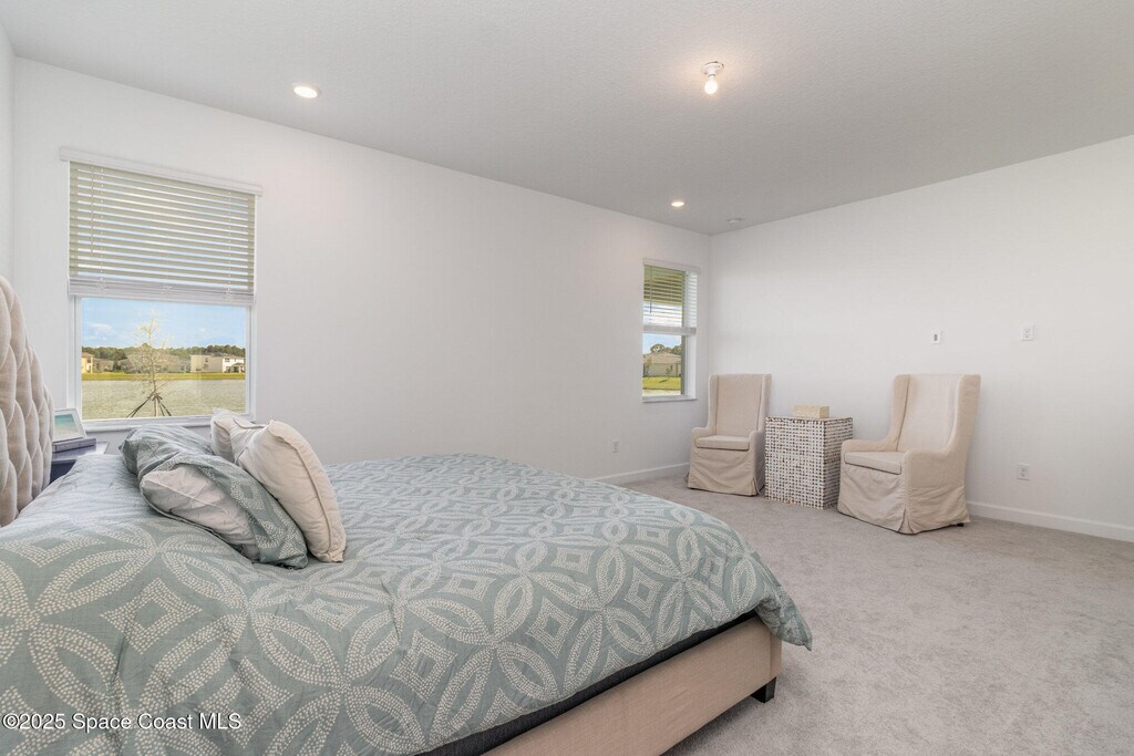 Wow,you have to see this one! This nearly new,waterfront 5-bedroom PLUS den home is available for move-in November 15. The open floor plan lets you live large with plenty of room for lounging and entertaining. The palatial first-floor primary bedroom overlooks the lake and flows through to a sparkling ensuite bath & huge walk-in closet. Upstairs there is a second family room and 4 more spacious bedrooms. First class finishes throughout - quartz countertops,marble windowsills,42'' cabinets and impact windows (for quiet,efficiency & easy storm prep). NO CARPET - new luxury vinyl plank will be installed throughout prior to lease start. Pets welcome on a case-by-case basis. Lawn care included. Community Pool a short walk away. The neighborhood has fun community events & movie nights planned throughout the year. Easy access to Melbourne via St. John's Heritage Pkwy,tons of shopping and dining within 10-15 minutes. Publix is opening 1 mile away!