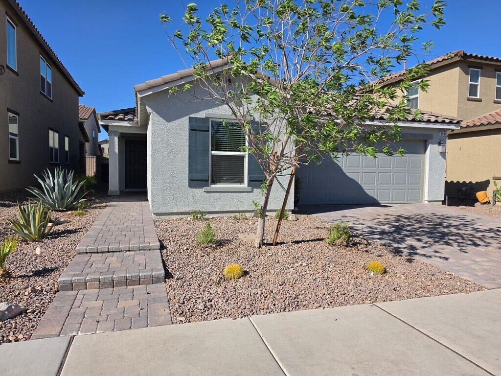 Sage Glen-Welcome home to this newer KB Single Story 3 Bedroom, 2 Bathroom home. Property features tile flooring in the entry/wet areas and luxury vinyl plank throughout the rest of the home. Main living space is open concept, great for entertaining. The kitchen has stainless steel appliances, granite counters and a pantry with gorgeous cabinets. The primary bedroom is off the living room and is separate from the others with 2 walk in closets. Primary Bath has dual sinks and a tub/shower. The 2 other bedrooms are on the other side of the house. There is also a hall bath with a tub/shower. Whirlpool washer/dryer in the hall closet with additional shelving. Upgraded blinds and ceiling fans w/lights installed throughout the home and bedrooms. Backyard is spacious with covered patio and synthetic grass and rock for easy maintenance . Come make this charming house your next home! ***This owner requires an average credit score of at least 650. Pets are considered at owner's discretion ***