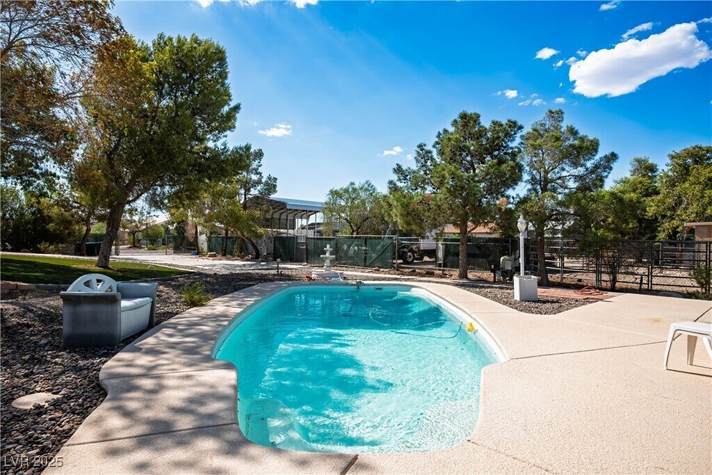 Stylish furnished rental on a half acre lot with a pool! This 4-bedroom 2-bath Las Vegas home is perfect for families or big groups. The rental price includes sewer, water, landscaping maintenance, pool maintenance. Just 15 minutes from the Strip and airport, enjoy your own private pool, BBQ area, outdoor lounge, pool table, and fully equipped kitchen. The home includes all furniture, smart TV, central AC, in-house laundry, and pet-friendly accommodations. Bedrooms feature a mix of king, queen, bunk, and trundle beds for flexible sleeping arrangements. Park your vehicles in the 2 car garage, with a huge driveway.