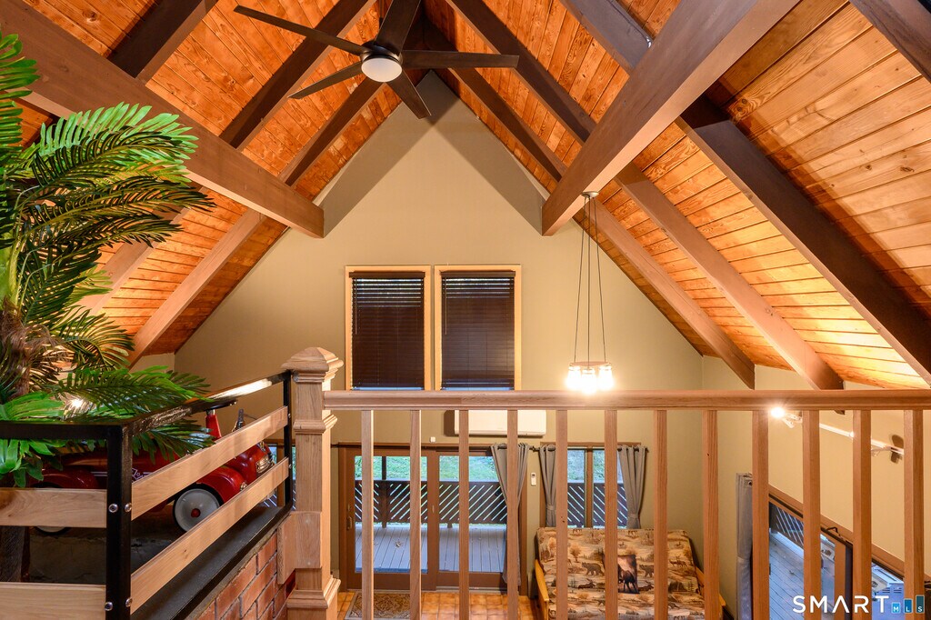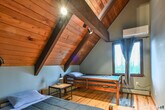 Call for Availability - Welcome to this charming A-frame in the highly sought-after Deer Run Shores community! Nestled in a serene setting, this home offers the perfect balance of rustic charm and modern comforts. The open floor plan features vaulted ceilings with exposed beams, creating a true lake house ambiance. Hardwood floors and a dramatic floor-to-ceiling brick fireplace add to the cozy yet spacious feel. The master suite and two additional bedrooms are located upstairs, offering plenty of room for family and guests. The well-appointed kitchen opens to a sunny deck, perfect for enjoying the peaceful views of the backyard. Downstairs, a large family room with a wet bar and wood stove provides a cozy retreat. Sliders lead to a brand-new blue stone patio, ideal for outdoor gatherings. Enjoy the convenience of Trex decking, and a covered wrap-around porch. Deer Run Shores is a welcoming, family-friendly community with access to a clubhouse, beach, and private lake access. MLS# 24152146