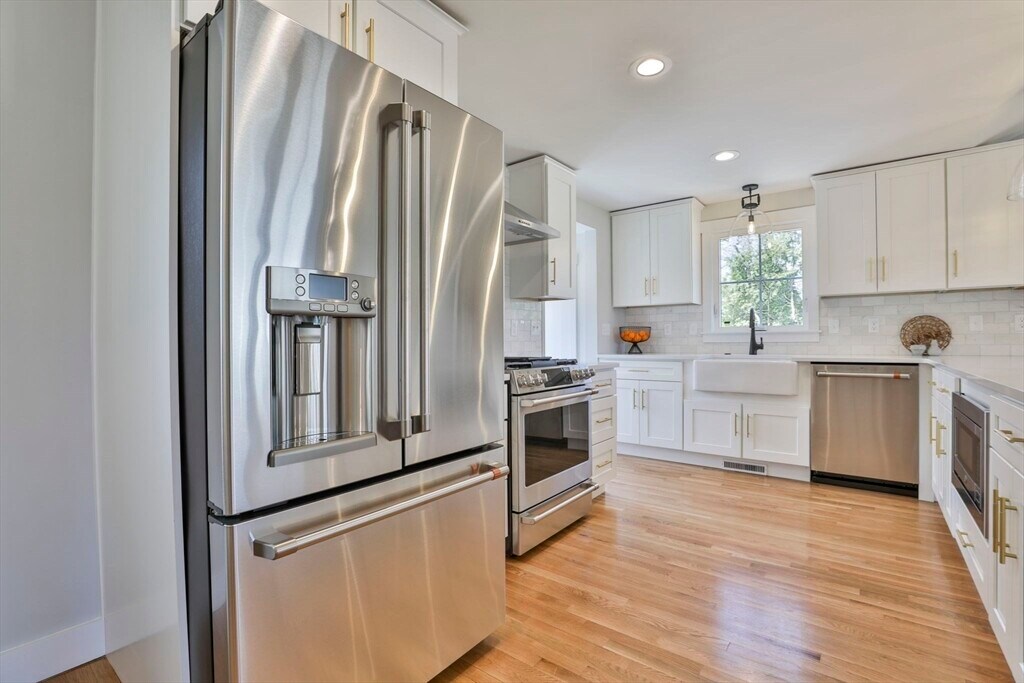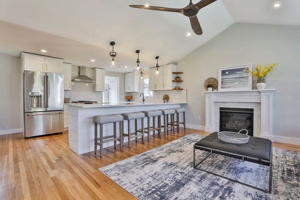 Beautifully renovated home nestled on a tree-lined street in Newburyport’s coveted North End. Embrace the charm of the neighborhood,just moments from parks,the waterfront,and the vibrant downtown culinary and retail scene. Property is currently occupied by a tenant and will be available for a new lease starting July 1st. Entertain effortlessly in the newer kitchen featuring quartz countertops,stainless Café appliances,and white cabinetry. The kitchen opens seamlessly to the living room with vaulted ceilings and a fireplace,as well as a built-in dining area with custom benches. The 1st floor primary suite offers a private bath,and dual closets. The finished lower level expands the living space with a game room,office,additional guest bedroom,and full bath. Outside,enjoy a built-in firepit,patio space,fenced yard,and 4-car off-street parking. With all newer roofing,siding,mechanical systems,driveway,and landscaping,there's nothing left to do but move right in. MLS# 73496937