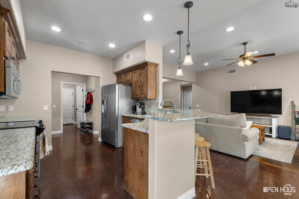 Spacious 4 bed, 2 bath rental in a quiet cul-de-sac neighborhood near SAFB! This home features beautiful stained concrete flooring, granite countertops and a large open living area perfect for relaxing or entertaining. The isolated primary bedroom offers privacy and includes a walk-in closet for plenty of storage. Enjoy the comfort of a well-designed layout with room for everyone. This one won't last long —Schedule your tour today!