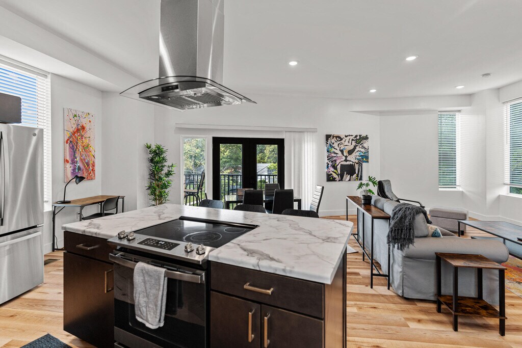 Avail January 1,2026! Nearly new,stylish,low-maintenance condo in a central Columbia. Step into an inviting open-concept living area with 11 ft tall ceilings and abundant natural light. The modern kitchen boasts solid surface countertops and stainless steel appliances,paired with a dining space ideal for everyday use or entertaining. A convenient half bath serves the main level. Upstairs,the primary suite includes a private bath and walk-in closet,while two additional bedrooms share a full bath. Laundry is located upstairs for easy access. Amenities & benefits include an attached 2 car garage,low maintenance exterior,efficient systems,quick access to major roads for quick commute,and convenient location close to downtown,campus,restaurants,parks,and shopping and hospitals.