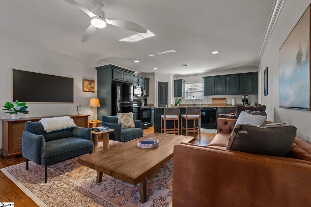 Fantastic lock and leave in the west end of downtown Greenville SC. New furniture, paint and appliances with a cozy interior design. Two large porches and a balcony gives way to outdoor living and allows for breezy fresh air when opened up. The master on the first level has a full bathroom attached and two bedrooms upstairs one with a queen and one with two twin beds each have their own bathroom attached as well. patio on the street level with a porch swing and covered storage area add to the usable outdoor space. Granite counter tops in the kitchen and quartz counters in the bathrooms add to the high-quality feel of this townhome. Enjoy gated entry and a two-car garage with a new epoxy floor with additional storage in the garage for bikes. This unit is accompanied with a 4-seater electric golf cart with a new lithium battery to allow the tenant to get around downtown within 3 miles radius of the address. This rental has a 30-night minimum, and all utilities and internet are included. Come and experience downtown Greenville at its finest!