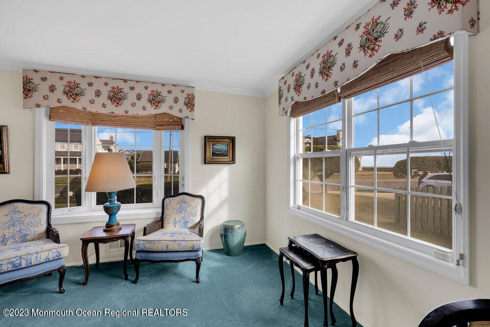 Just three homes from Spring Lake's gorgeous,wide,uncrowded north end beaches and historic boardwalk,this traditional 4 BR,3 BA colonial is the perfect retreat for a peaceful,relaxing vacation. With ocean views from many rooms,this home features a huge formal living room,a dining room that seats 8,a large eat-in kitchen and a bright family room with fireplace. The rear screened porch and deck above have fabulous ocean and boardwalk views,and the deck is perfect for stargazing. Newer 2 zone AC,appliances,and beds. Natural gas grill. Garage storage for your bikes and plenty of parking in the long driveway. Heated Gunite pool with spa. Includes 3 beach/pool badges and 2 beach badges. 2 week minimum. Also available Winter 2026 at $3600 per month.