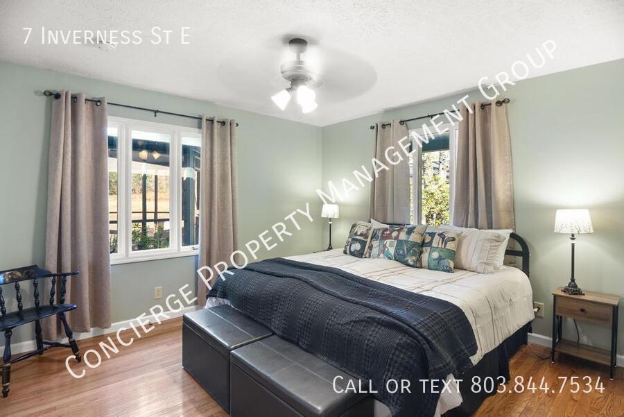 Rare Opportunity to rent in Aiken's Houndslake Country Club. This fully furnished Mid-Century Charmer is located right on the golf course, and only a few blocks from the clubhouse, tennis courts, and swimming pool. The large living room with wood burning fireplace opens up to a formal dining area and a spacious kitchen with tons of storage and prep space. The Owners suite has a beautiful updated ensuite bath with a claw foot tub and tiled shower. There are several wonderful exterior patios and garden areas, including a gazebo for relaxing and entertaining guests. There is also an oversized two car garage with a large laundry and storage room attached. Utilities are included! Call today to schedule your tour! You don't want to miss out on this amazing property!
