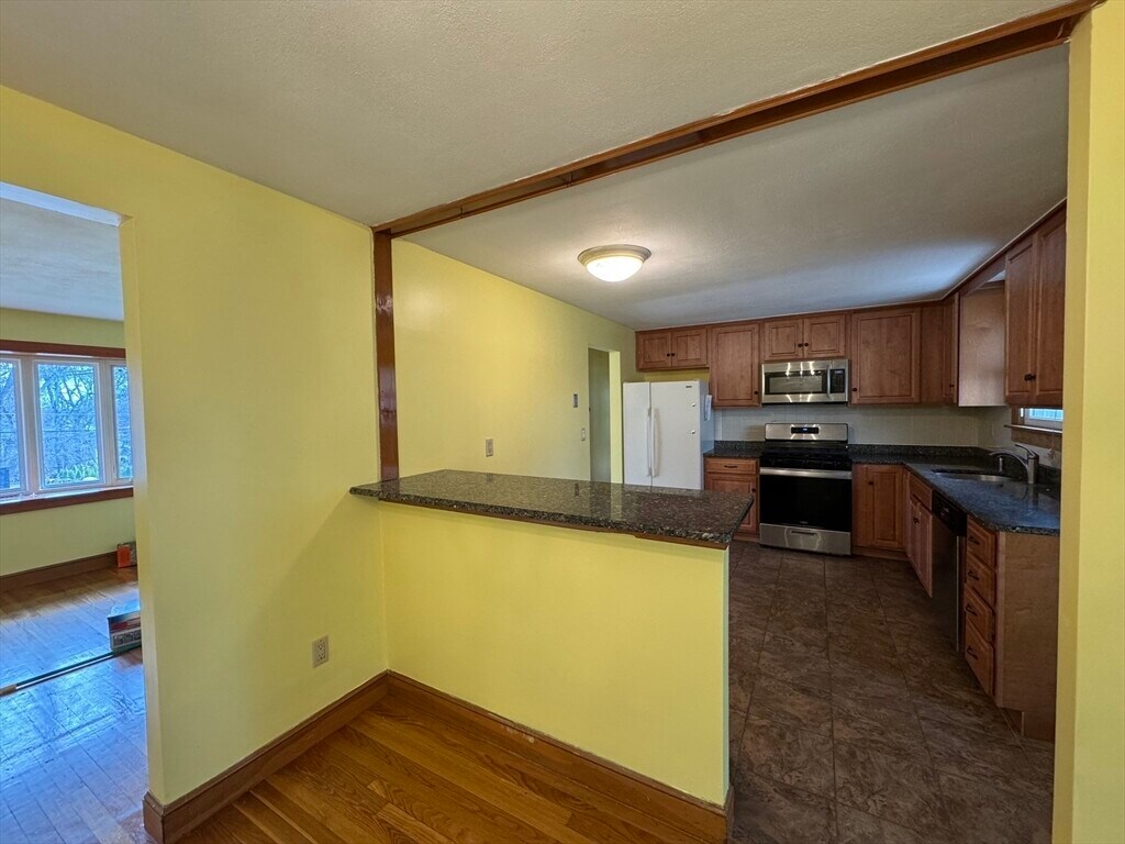 Welcome to 7 Lee Street,Walpole. Set on a picturesque ¾-acre country lot,this appealing 7-room split-level ranch offers space,comfort,and convenience in a beautiful setting. The fully appliance kitchen features maple cabinetry,granite countertops,tile backsplash,ceramic tile flooring,and a center island—perfect for everyday living and entertaining. A French door leads to a spacious deck overlooking the private yard and scenic surroundings. Enjoy a formal dining room with a slider to a charming 3-season room,and a bright living room highlighted by a brick fireplace,bow window,and gleaming hardwood floors. The home offers three bedrooms,all with hardwood flooring,along with a main bath featuring a marble vanity and tub/shower. The finished lower level expands your living space with a cozy family room complete with a second fireplace,a full bath with shower,and a laundry room. Additional highlights include a two-car garage,a peaceful backyard retreat. Available Now MLS# 73496311