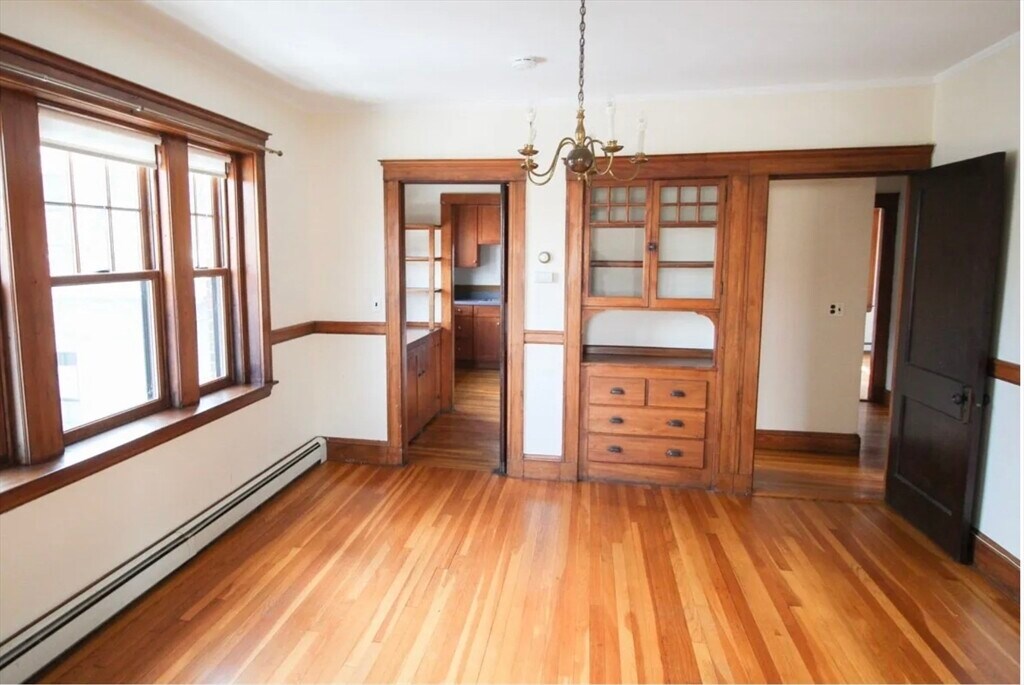 Rarely available!!! Spacious and sunny two bedroom,one bathroom unit set in the heart of Brookline Village overlooking Linden Park. Beautifully maintained,this unit features a front-facing living room,eat-in kitchen with plenty of pantry space,formal dining room with built-in china cabinet,high ceilings,and hardwood floors throughout. In unit laundry. 1 rental parking. available near by for $200 a month.Fabulous location with easy access to the Longwood Medical Area,downtown Boston,local restaurants,coffee shops,and grocery stores. Minutes to the D (Green line). Laundry in the building. MLS# 73479297
