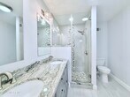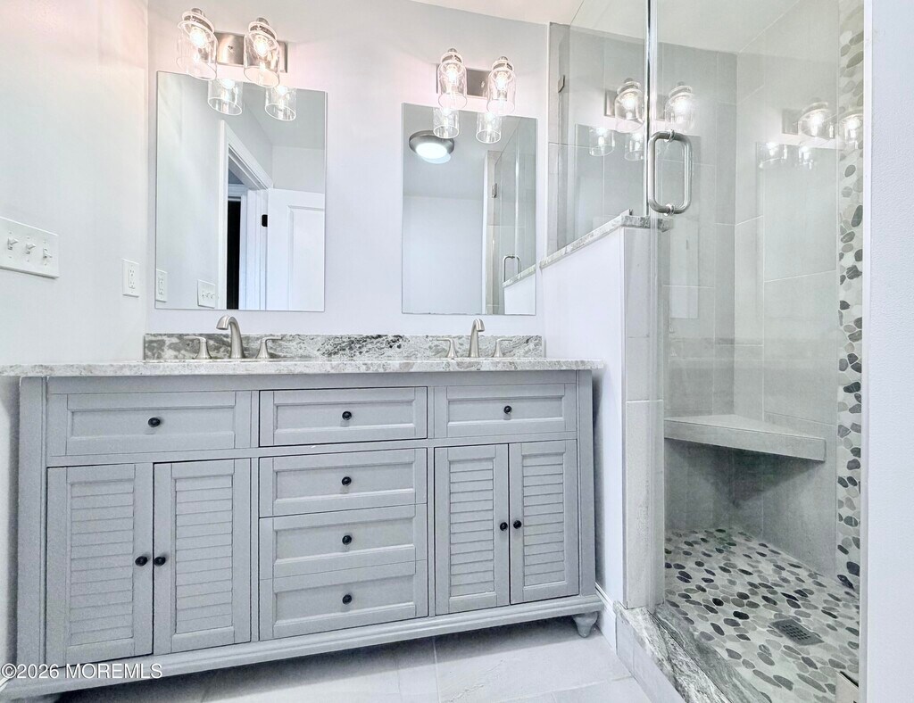 Beautifully renovated 2BR + Den,2.5BA duplex with 1-car garage in desirable Poets Corner. Bright open layout with abundant windows and dramatic cathedral ceilings in the Living Room,Den and Primary BR. Updated kitchen features expensive granite counters,wood cabinets,SS appliances,tile floor and breakfast area. Spacious primary suite offers sitting area,luxury bath and organized walk-in closet. 2nd bedroom with charming window seats and its own full bath; both bedrooms are have ensuite bathrooms which were beautifully updated. Dream laundry room with counter and cabinets. Large den/office with wood-burning fireplace & paneled ceiling overlooking the backyard. Fenced patio & yard perfect for summer BBQs. Convenient access to Rt 79,Rt 18 and Rt 9,plus restaurants,shopping and banks