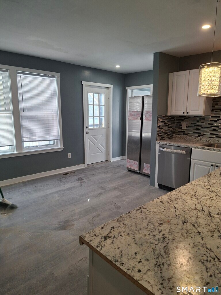 Call for Availability - Completely renovated 1st floor apartment in the heart of East Hampton a quick walk away from Lake Pocotopaug. Master bedroom with full bathroom, brand new eat in kitchen, new flooring, additional full bathroom and second bedroom off kitchen. Private backyard perfect for pets. MLS# 24152473