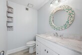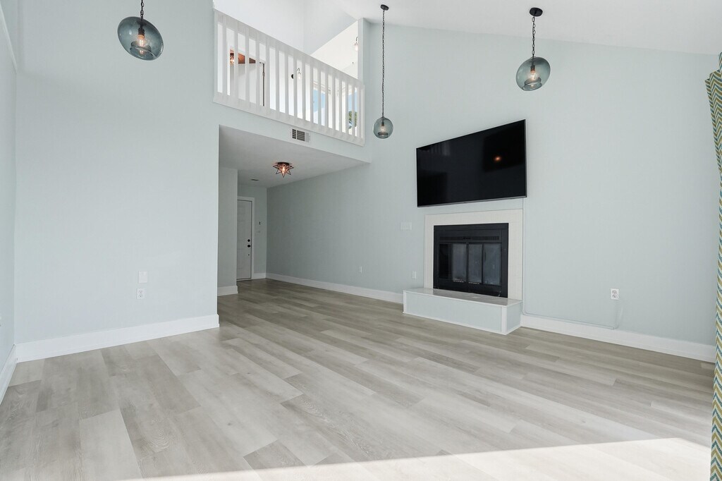 Stunning waterfront townhome in the heart of Bluewater Bay, offering breathtaking views of the Choctahatchee Bay and an effortless coastal lifestyle. This beautifully renovated three-bedroom, three-and-a-half-bath residence features modern finishes throughout and outdoor living spaces perfectly positioned to take in the water views.Step inside to a fresh, bright, and airy interior highlighted by luxury vinyl plank flooring, updated lighting, and a cozy wood-burning fireplace anchoring the main living space. The open kitchen is designed to impress with stone countertops, designer backsplash, crisp white cabinetry, stainless steel appliances, and a dedicated dining area. A comfortable sitting room just off the kitchen and living area creates additional space to relax or entertain while