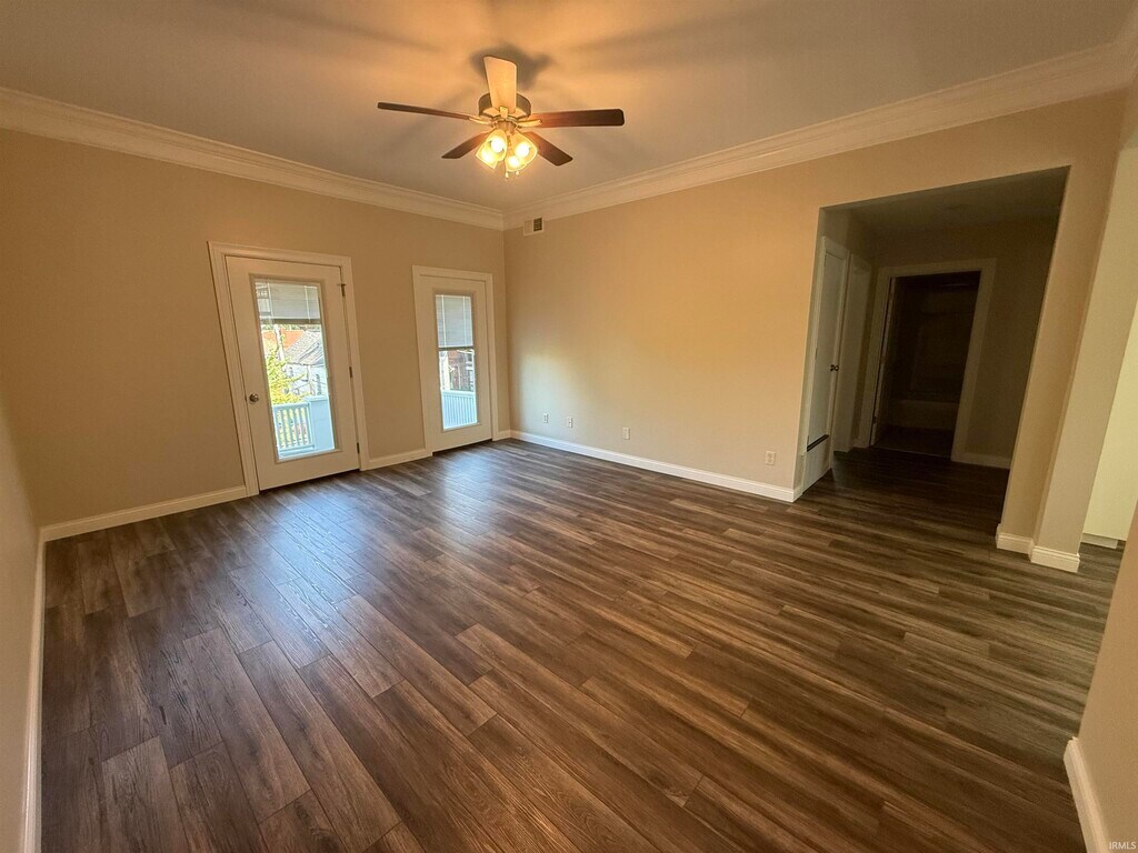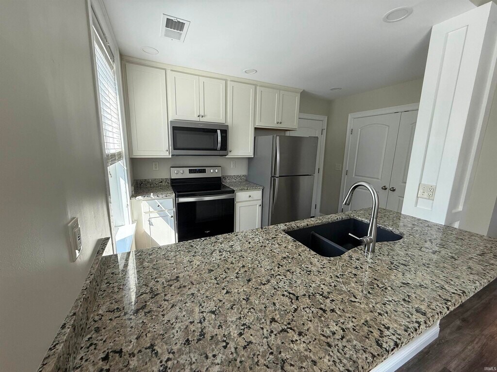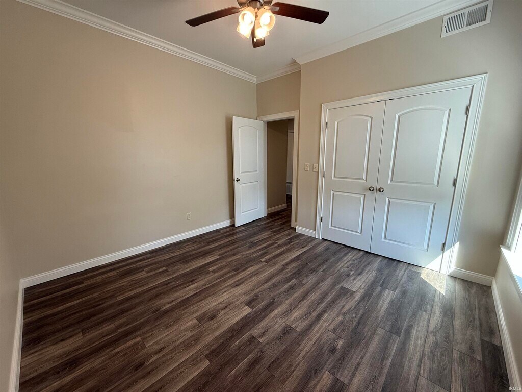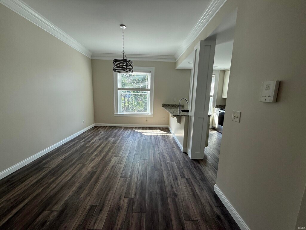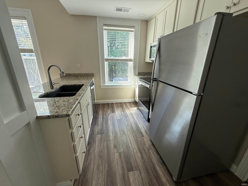 Located on the third floor of a charming building in downtown Evansville, this 2-bedroom, 1-bath unit offers stylish updates and modern convenience. Enjoy laminate flooring throughout, granite countertops in the kitchen and bathroom, and stainless steel appliances. The spacious layout includes ample closet space, a large private balcony, and full-size washer and dryer. There's plenty of additional storage as well. 12-month lease with matching security deposit required. Credit, background, and rental history checks are mandatory. No smoking and no pets allowed.