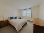 Escape to the tranquility of lakeside living in this sun drenched 2-bedroom, 1-bathroom condo offering sweeping, panoramic views of the water. Nestled along serene shores, this inviting residence blends the calm of nature with the comforts of modern living. Featuring an open-concept layout, the living room flows seamlessly into a fully equipped kitchen with ample cabinetry, laminate countertops, and essential appliances, including a full-size refrigerator, range, microwave, and dishwasher. Both bedrooms are generously sized, offering ample closet space for comfortable everyday living. The bathroom is clean and functional, complementing the home’s warm and welcoming atmosphere. A highlight of this condo is the private walkout deck, your own peaceful retreat perfect for morning coffee, outdoor dining, or simply taking in the stunning year-round lakeside scenery. Conveniently located just minutes from downtown, you'll have easy access to local shops, restaurants, and everyday essentials. Unit is partially furnished but can be unfurnished.