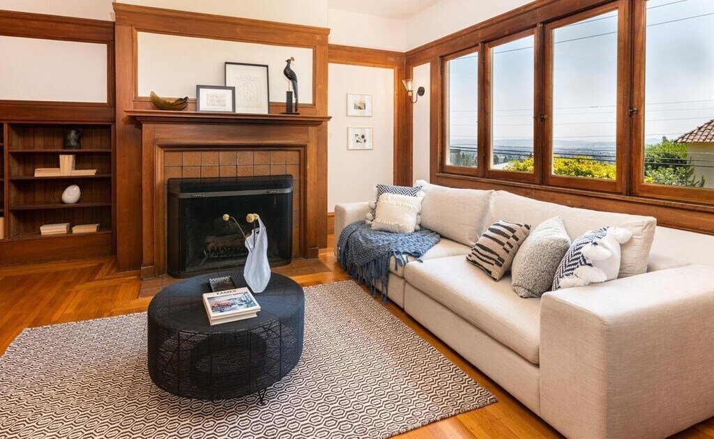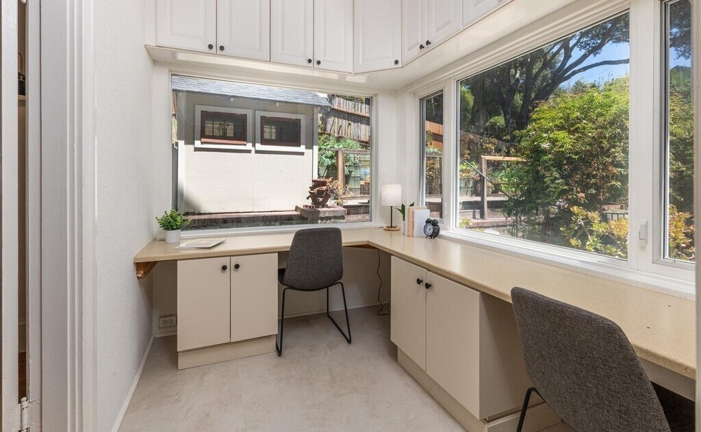 This two-bedroom, one-bath apartment also features a window-wrapped study and an updated eat-in kitchen with stone countertops, a gas range, dishwasher, microwave and stylish cabinetry that makes cooking—or late-night snacking—feel effortless. Original Douglas-fir floors, box-beam ceilings, and built-ins preserve the home’s 1912 character, while oversized windows frame sweeping Bay views. Tucked into an intimate six-unit building just minutes from UC Berkeley, the residence offers laundry, secure bike storage, terraced garden patios, and flexible furnished or unfurnished lease options. Water and refuse are included, and the community remains smoke-free . Come see why this hillside gem feels both professional in its pedigree and personal in its warmth—you may never want to leave.