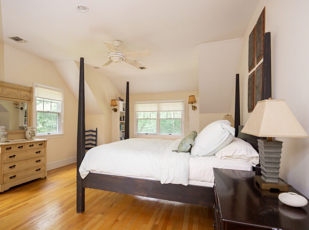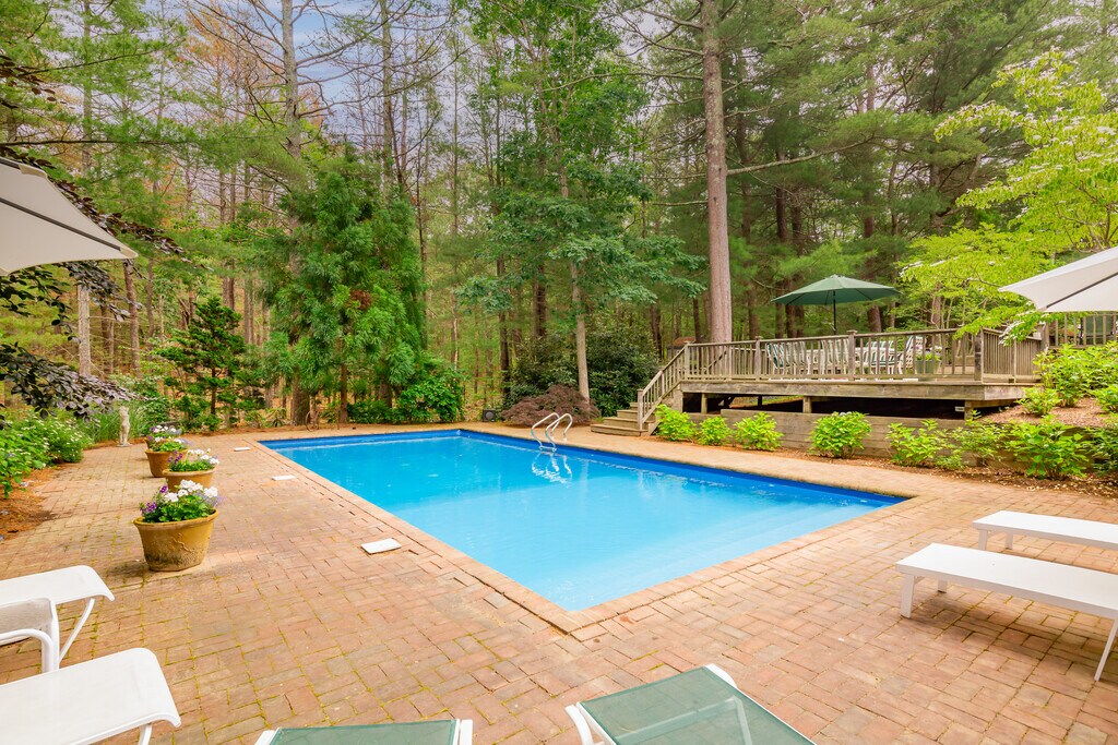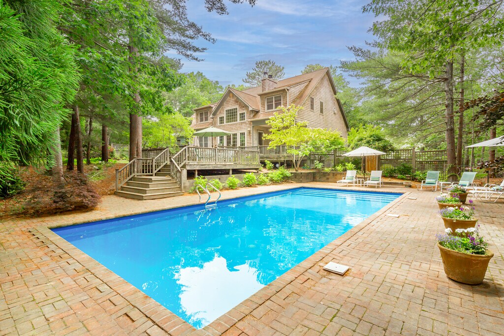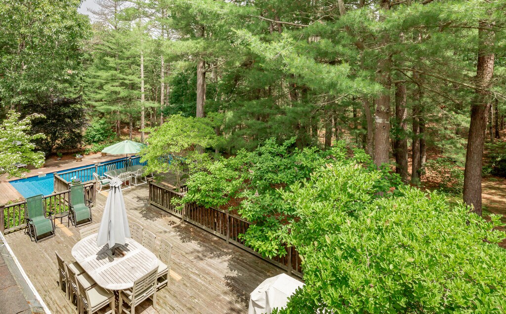 Nestled in a secluded 3.3-acre area of towering pines, this elegantly furnished two-story post-modern sits on a private road in the Northwest Woods. Tasteful amenities include a double-height living room with fireplace, media room with big screen TV, gourmet kitchen and dining area, second floor loft/den, four spacious bedrooms, including first and second floor primary suites, four bathrooms, screened-in porch, outdoor shower, dual-level decking, heated pool and lush landscaping. Additional features include central A/C and vacuum, cable television, high-speed internet access and large grill - with all of your summer memories just waiting to be made. [[Rental Registration # 22-346]] EH RR #: 26-208 Rental Terms: July - Labor Day: $80,000 August - Labor Day: $47,000 June: $29,500 Memorial Day - Labor Day: $98,000 July: $40,000 June/July: $68,000 Two Weeks: $22,000