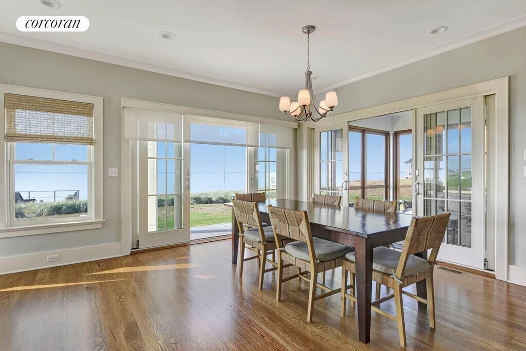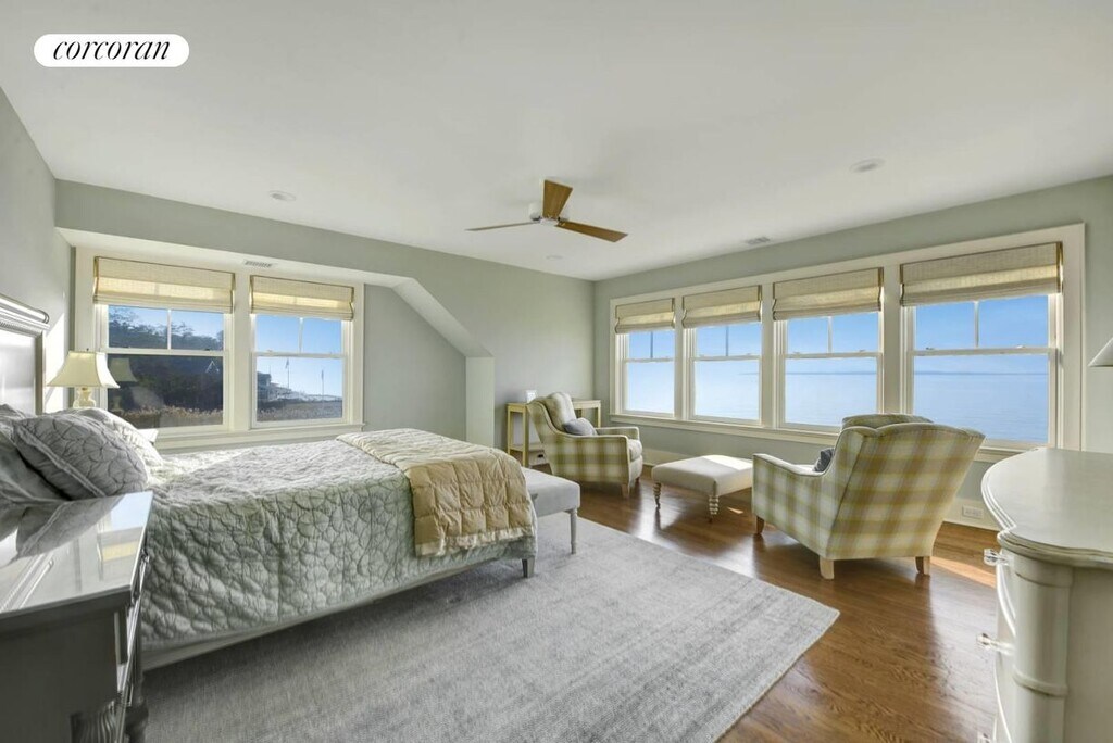 Stay in this beautiful, recently built 3 bedroom/4 bath Sag Harbor waterfront with unobstructed, expansive 180-degree views, including spectacular sunsets and water views from most rooms. Just a short drive to the U.S. Open, this stylishly furnished and impeccably maintained home has an open floor plan is designed for today's living. A chef's kitchen with butler's pantry, both a living and family room and a waterfront screened-in porch are some of the first floor features. Upstairs is the master suite with a sitting area overlooking the bay, plus 2 generous guest rooms with their own baths. Outside you'll find a lovely covered porch with rocking chairs to enjoy watching boats sail by, and adjoining the water is an elevated sunning deck with direct water access for swimming, paddle boarding, and kayaking. This special home is located in the prestigious Northampton Shores community, adjacent to Morton Wildlife Refuge and just minutes beaches, golf, and Village shops, restaurants, and theater. A very special home for your Hamptons stay. [[Rental Registration # RP240453]]