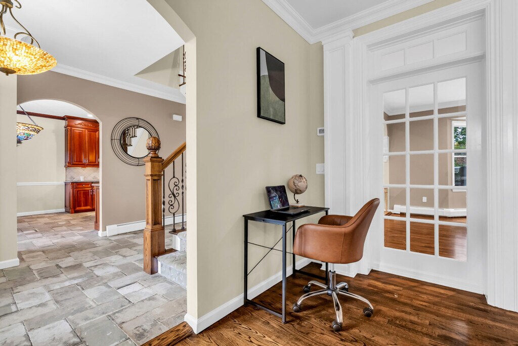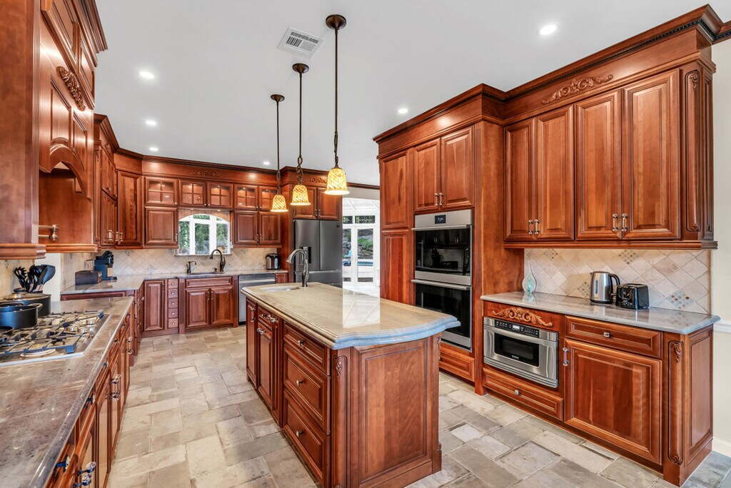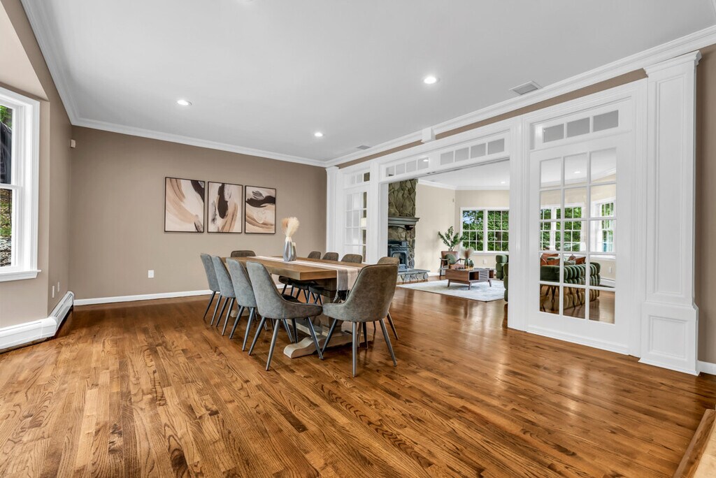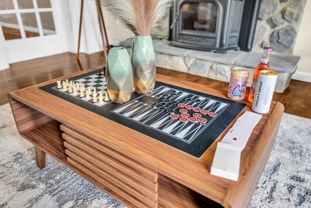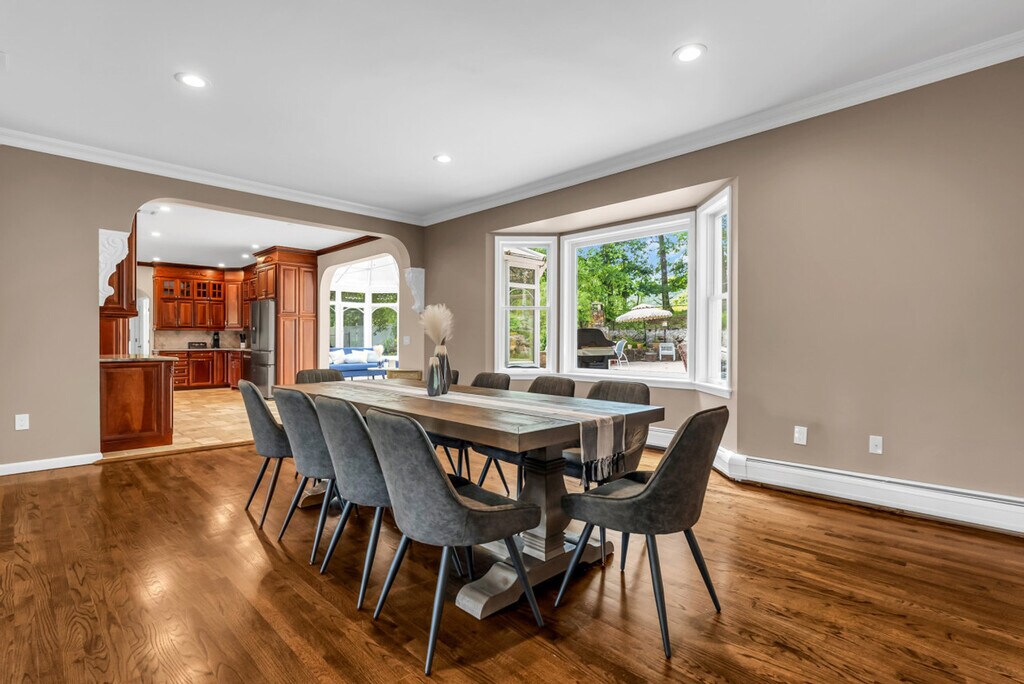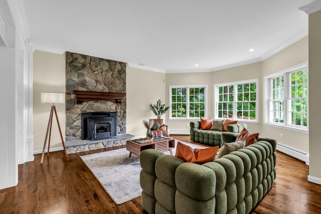Feel at home in this serene home located in the hills of Stony Point, NY. This home features a large front porch with comfortable seating for 5, where you can relax in the shade while enjoying the beautiful views. The wide entryway leading into this home has a large coat closet. Ahead of you is the beautiful winding staircase with wrought iron railing which leads upstairs. The large cherry wood kitchen boasts brand-new appliances, including a dishwasher, refrigerator, 2 ovens, coffee machine, stovetop, microwave, and blender. The kitchen has pots and pans, cutlery, and dishware for your convenience. There is plenty of room for family dinners in the expansive dining room which overlooks the backyard. A bar area is situated right between the kitchen and dining room. Make use of the wine cooler and pop a cork in the breathtaking sunroom which overlooks the backyard’s beautiful landscaping and sparkling pool. With modern, comfortable seating, the sunroom is the perfect spot for you to connect with friends while admiring the view through the windows surrounding you. This home features large flatscreen TVs, free high-speed Wi-Fi, a dining table that seats 12, a patio, outdoor bar, BBQ grill, and a fully equipped laundry room. The garage, converted into a gym and game room, includes a treadmill, bike, dumbbells, pool and foosball tables, and a refrigerator. There is a $50 charge per day to have the pool heated. This home is set off the road with a long driveway ensuring your complete privacy. The manicured landscaping throughout the property is sure to impress, and the large backyard is fully fenced and private. The sparkling heated in-ground pool is set right off the patio. The large pool area has everything a heart can desire. A heated jacuzzi is connected to the pool. Daybeds and wicker rocking chairs surround the pool. A beautiful fireplace and seating area allow you to sit around after taking a dip. In case you’d like to have an outdoor meal, the grill and patio set are nearby. A bar area completes this space. This home is located in a residential area; therefore, no loud noise is allowed after 9 pm. Please be considerate of the neighbors and do not park on the road. No smoking is allowed and there will be a $500 penalty if violated. There is a $175 penalty fee for lost keys. There will be a $300 penalty fee for early check-in or late check-out that is unauthorized. [SI]