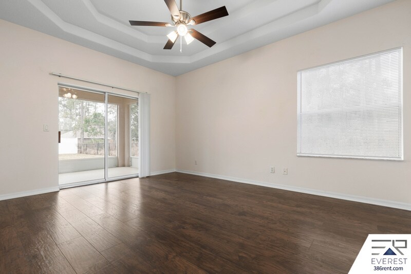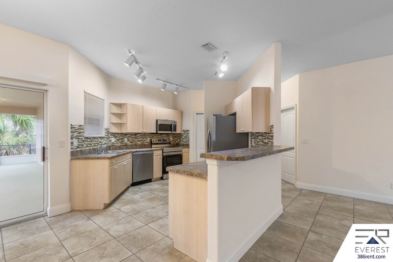 THIS FULLY FENCED, SPACIOUS 4 BEDROOM, 2.5 BATHROOM HOME FEATURES A KITCHEN WITH ALL BLACK APPLIANCES, GLASS TILE BACKSPLASH, COUNTER BAR, AND BREAKFAST NOOK... FORMAL DINING ROOM, LIVING ROOM, AND FAMILY ROOM... TREY CEILINGS, TILE AND WOOD FLOORING THROUGHOUT AND CARPETED BEDROOMS... SPLIT BEDROOM PLAN, LARGE MASTER SUITE OFFERS WALK-IN CLOSET, DOUBLE SINK VANITY, ROMAN TUB AND WALK-IN SHOWER... 3 SETS OF SLIDING GLASS DOORS LEAD TO THE OVERSIZED COVERED/SCREENED-IN PORCH AND FULLY FENCED, PARK-LIKE BACKYARD... SEPARATE LAUNDRY ROOM, 2 CAR GARAGE. HOME FEATURES 3082 TTOAL SQ FT, 2180 LIVABLE SQ FT. LOCATED ON A QUIET CUL-DE-SAC IN THE POPULAR LEHIGH WOODS NEIGHBORHOOD, WITH EASY ACCESS TO SCHOOLS, SHOPPING, TOWN CENTER, BEACHES, MAJOR HIGHWAYS, DAYTONA BEACH, AND HISTORIC ST AUGUSTINE... SOLID LANDLORD! AVAILABLE FOR IMMEDIATE MOVE-IN. $2150 ON 3-YEAR LEASE $2250 ON 2-YEAR LEASE $2350 ON 1-YEAR LEASE