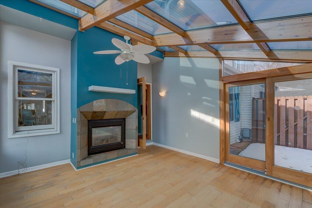 Experience exceptional living in this beautifully renovated townhouse duplex, featuring numerous upgrades & finishes. Step inside to find new flooring throughout, striking slate tile in the upstairs bathroom, & a spacious walk-in closet in the primary bedroom. Modern essentials include a newer furnace, roof, & freshly paved driveway. Entertain or relax on 2 maintenance-free decks or the patio within a fully fenced, spacious backyard—perfect for privacy & outdoor gatherings. Enjoy the warmth & ambiance of two fireplaces: a two-sided fireplace connecting the living room & sunroom, & a second fireplace in the lower-level family room with an egr