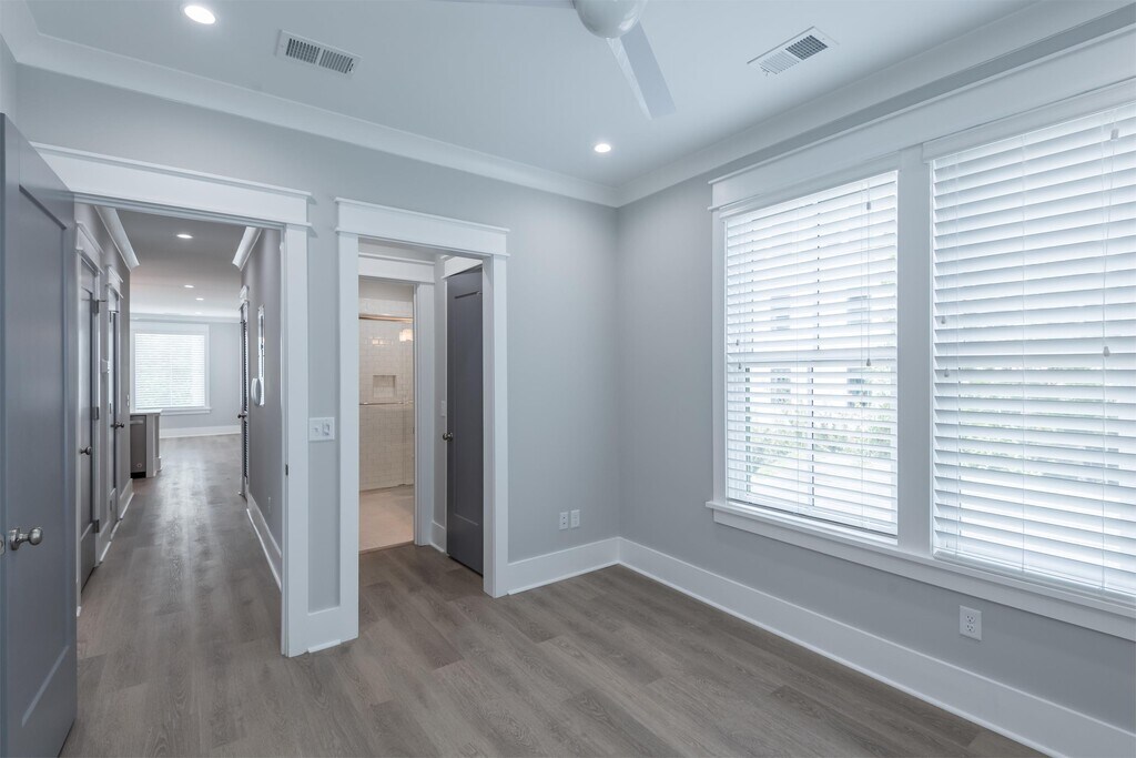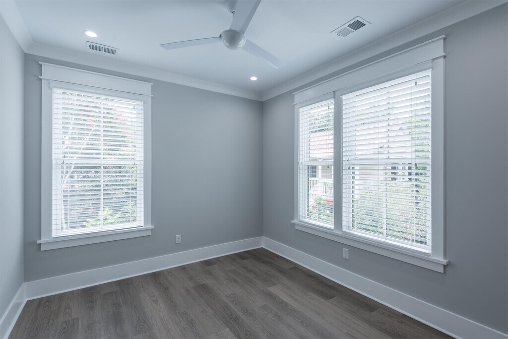 AVAILABLE FOR MOVE-IN AUGUST 1, 2026 Experience luxury living on one of downtown Charleston's most stunning and private courts. Nestled within the new Sanctuary Court Development in the heart of the historic district, this expansive 2-story residence offers an unparalleled blend of modern design, abundant natural light, and exceptional privacy, an extremely rare find in this location. Step inside to a bright, open kitchen and living area anchored by a dramatic 5' wide stairwell. The chef-inspired kitchen features sleek quartz countertops, modern tile backsplash with floating shelves, and generous cabinetry for effortless organization. Premium stainless-steel Whirlpool appliances, including a gas range with hood, microwave, refrigerator with ice/water dispenser, dishwasher, garbage disposal, and an in-unit washer/dryer, add both style and everyday convenience. The living room is wrapped in oversized windows, flooding the space with warm natural light and creating a serene, airy atmosphere. A guest powder room is thoughtfully positioned off the hallway. The first floor offers two spacious bedrooms, each with its own en-suite bathroom and large closet. Upstairs, you'll find two additional private bedroom suites, each featuring its own full bath and walk-in closet, perfect for those seeking room to spread out or host comfortably. Parking is not included at this time, but onsite parking may become available later in the year. Special Features: Stunning natural light and exceptional privacy Ample kitchen cabinetry with quartz countertops In-unit washer & dryer Yale electronic entry lockset for enhanced security Please note: All applications include a $25 administrative fee. Sanctuary Court is a mixed-use planned unit development located on Spring Street between Rutledge and Ashley Avenue on Charleston's main peninsula. This property is located within the Cannonborough/Elliottborough neighborhood, and the community concept is the incorporation of residential and mixed-use spaces, resulting in an appropriately scaled neighborhood court. The community consists of 20 luxury rentals and long-term rental apartments, 8 short-term vacation rental suites, 1 office space and 1 restaurant space. The expansive brick court serves as the central element of the community and creates a shared open space for the residents to enjoy. Each building relates directly to the court, creating a common gathering space. The exterior finishes are comprised of brick, traditional stucco, cementitious siding, Ipe louvers, aluminum clad windows/doors and ornamental steel. The landscaping is a mixture of large canopy trees, including Live Oaks, Japanese Maples and Cherry trees, with large Sable Palms mixed throughout. The hardscape displays traditional tabby concrete, herring bone and running bond brick pavers and pervious limestone gravel.