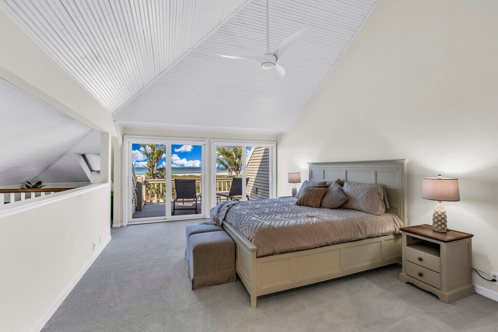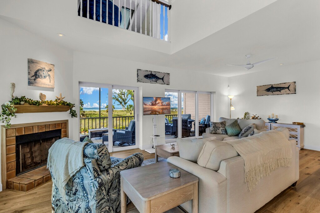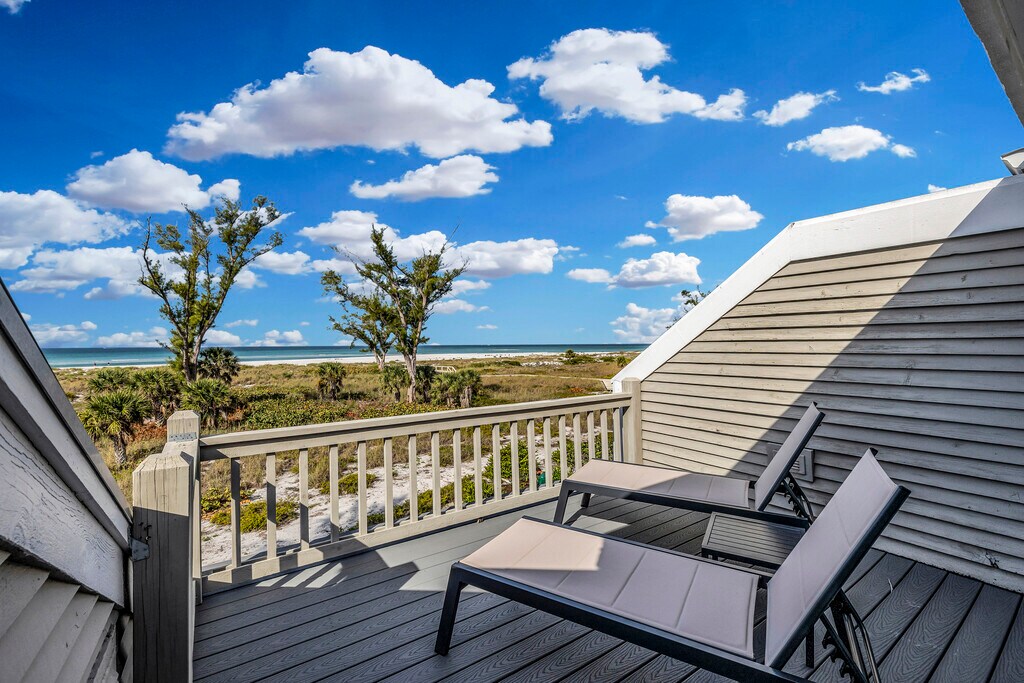 This "front row" villa offers expansive views of the Gulf of Mexico. The main floor living area is full of sunlight and offers spectacular Gulf views from the kitchen, dining room and the living area. The spacious screened in porch is ideal for watching the sunsets. The master suite is equipped with an office and a private sun deck. The community offers 2 swimming pools and a tennis court.