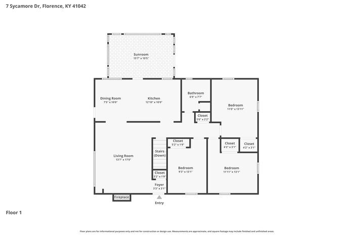 MOVE-IN READY This home is move-in ready. Schedule your tour now or start your application today. Monthly Recurring Fees: $25.00 - Smart Home $10.95 - Utility Management Welcome to 7 Sycamore Drive, a 3-bedroom, 1-bathroom home offering 1,560 square feet of comfortable living space in Florence. With its classic brick exterior, mature trees, and inviting front walkway, this home sets a welcoming tone from the moment you arrive. Inside, fresh interior paint complements the rich hardwood flooring that flows through much of the home, creating a warm and cohesive feel. The main living area is filled with natural light from large windows, offering a bright and open setting that easily adapts to your daily routine. Just beyond, a second living space provides added flexibility, ideal for a media area, workspace, or additional lounge, while maintaining a connected and functional layout. The kitchen is designed for both efficiency and everyday use, featuring white cabinetry, ample counter space, and a full appliance package. Adjacent dining space makes mealtime convenient, with easy access to the rest of the home. Each bedroom offers comfortable proportions, hardwood flooring, and natural light, while the bathroom includes a clean, practical layout with tiled shower details and nearby storage. One of the standout features is the sunroom, surrounded by windows and offering a versatile space to enjoy throughout the day. Whether used as a reading nook, workspace, or simply a place to unwind, it adds an extra layer of flexibility to the home. Located in Florence, this property offers convenient access to shopping, dining, and major highways, with downtown Cincinnati approximately 20–25 minutes away. Apply now! *Maymont Homes provides residents with convenient solutions, including simplified utility billing and flexible rent payment options. Contact us for more details. This information is deemed reliable, but not guaranteed. All measurements are approximate. Actual product and home specifications may vary in dimension or detail. Images are for representational purposes only. Some programs and services may not be available in all market areas. Prices and availability are subject to change without notice. Advertised rent prices do not include the required application fee, the partially refundable reservation fee (due upon application approval), or the mandatory monthly utility management fee (in select market areas.) Residents must maintain renters insurance as specified in their lease. If third-party renters insurance is not provided, residents will be automatically enrolled in our Master Insurance Policy for a fee. Select homes may be located in communities that require a monthly fee for community-specific amenities or services. For complete details, please contact a company leasing representative. Equal Housing Opportunity. Estimated availability date is subject to change based on construction timelines and move-out confirmation. This property allows self guided viewing without an appointment. Contact for details.