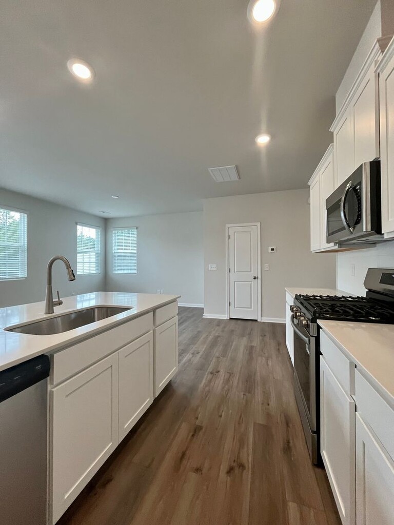 Welcome to this Brand New stunning two-story townhouse with an attached 1-car garage, located in the heart of Taylors, SC. This modern open layout home boasts three spacious bedrooms and 2.5 well-appointed bathrooms. The heart of the home, the kitchen with stainless appliances, gas stove top, is a chef's dream with its open concept to the breakfast/dining area, beautiful white cabinetry, and white subway tile back-splash, creating a bright and inviting space for cooking and entertaining. The private back patio offers an additional outdoor living space, perfect for enjoying the South Carolina weather. Perfectly nestled on the top floor are all three bedrooms to provide a restful retreat. Two secondary bedrooms are adjacent to a full-sized bathroom with convenient dual sinks for shared living, while on the opposite side is the serene owner’s suite with an en-suite bathroom. The townhouse comes with a washer and dryer, and trash service is included. Combine style, comfort, and convenience, making it a perfect choice for those seeking a high-quality living experience. Freeman Park offers a peaceful suburban setting with a great school district, along with plenty of local restaurants and shops in Taylors and nearby Greer. Downtown Greenville is a short 15-minute drive away with nightlife, shopping and entertainment.