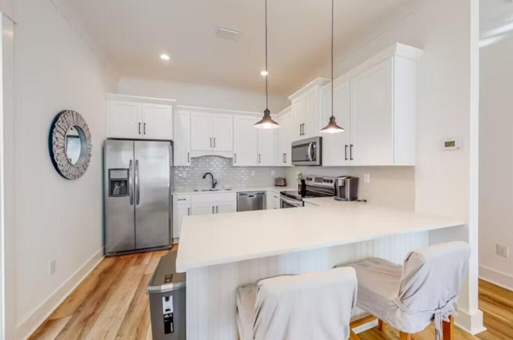 Unplug, unwind, and feel at home in this beautifully designed, newly built two-story beach cottage located just steps from the Gulf! Perfect for families, couples, or friends, this retreat offers the perfect blend of comfort and modern style. Inside, you’ll find a fully equipped kitchen with stainless-steel appliances, quartz countertops, and a breakfast bar for two — ideal for morning coffee or easy meals. The open-concept living area features shiplap walls, cozy seating, and a smart TV, creating a welcoming space to relax after a fun day at the beach or pool. Gather around the dining table for family dinners, board games, or late-night snacks. Parking is available for 2 cars. Pets are allowed — up to 2 dogs weighing under 45 pounds each. Enjoy the shared community pool or take a quick stroll across the street to the sugar-white sands of Orange Beach. The neighborhood connects directly to the Gulf State Park trail system, perfect for biking, walking, or exploring nature. For March 1st to May 1st the minimum age requirement for check-in is 25 years old. Traveler must be at least 23 years of age to make a reservation. For same day late check-ins, you need to get the partner's approval before booking. Smoking is not allowed in the unit/house as well as the balcony, and any violation of the smoking policy will incur a $250.00 fine plus the cleaning costs necessary to remove smoke odors from the unit/house and/or linens. Parties are not allowed.
