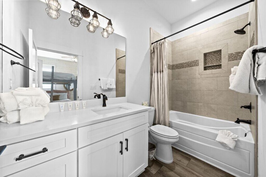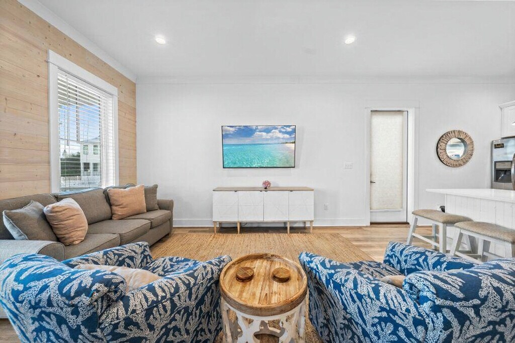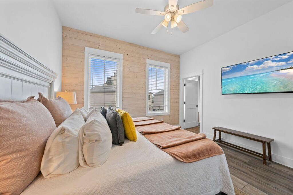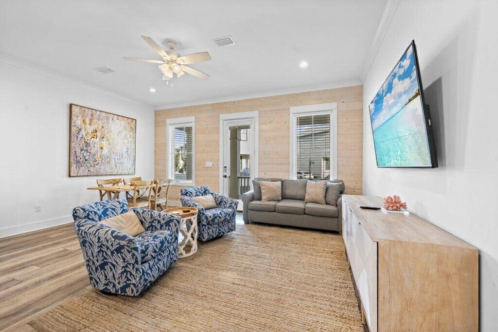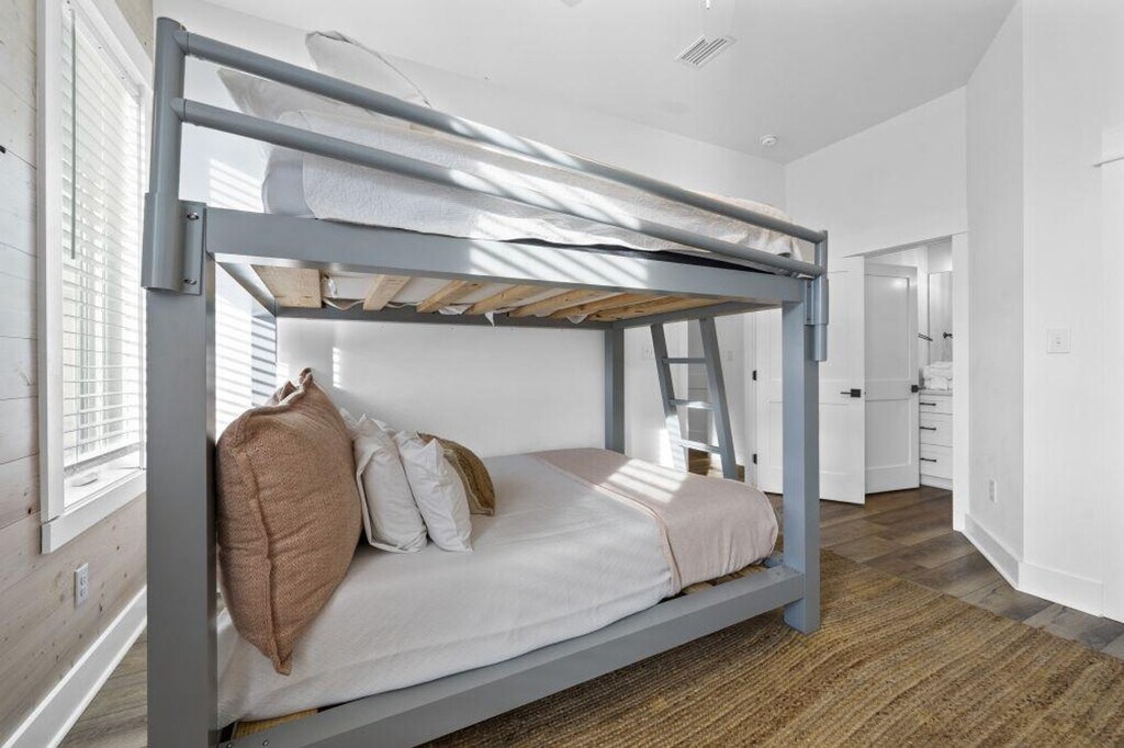 Feel at home in this beautifully designed, newly built beach cottage located just steps from the Gulf. This two-story retreat offers the perfect blend of comfort and modern style. Inside, you’ll find a fully equipped kitchen with stainless-steel appliances, quartz countertops, and a breakfast bar for two, ideal for morning coffee or easy meals. The open-concept living area features shiplap walls, cozy seating, and a smart TV, creating a welcoming space to relax after a fun day at the beach or pool. Gather around the dining table for family dinners, board games, or late-night snacks. Enjoy the shared community pool or take a quick stroll across the street to the sugar-white sands of Orange Beach. The neighborhood connects directly to the Gulf State Park trail system, perfect for biking, walking, or exploring nature. Parking is available for 2 cars. Pets are allowed with a fee of $125 plus taxes per dog, per stay. A maximum of 2 dogs is permitted, each weighing up to 40 lbs. This apartment is directly across from the beach, steps from the pool, and offers access to Gulf State Park trails. It is also close to local restaurants, shopping, and attractions. For March 1st to May 1st the minimum age requirement for check-in is 25 years old. For same day late check-ins, you need to get approval before booking. Smoking in the apartment or on the balcony will incur a $250 fine plus the cleaning costs necessary to remove smoke odors from the apartment and linens. Parties are not allowed. Guests must be at least 23 years of age to make a reservation and provide a state identification card or driver's license upon booking. [SI]