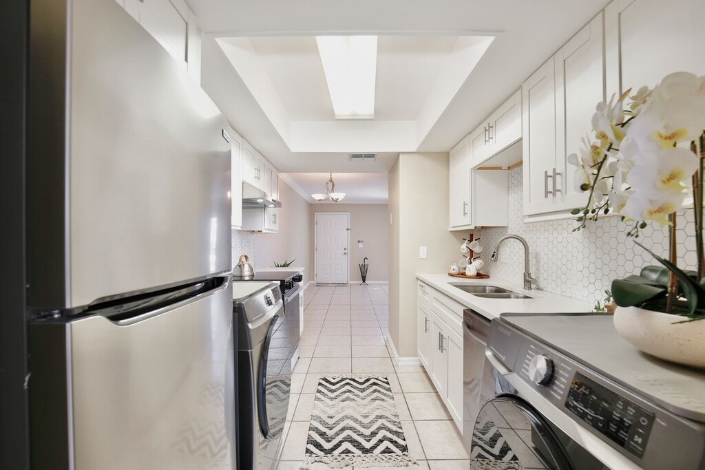 Welcome to your new slice of paradise, where everyday living feels like a tranquil retreat. This beautifully well maintained unit is the epitome of comfort and style near Central Florida’s best attractions. Step inside to an open and airy interior that basks in natural light, featuring tile floors and neutral colors that create a canvas for your personal touch. The entrance invites you into a living room with elegant crown molding and an accent wall with trim. The dining space is illuminated by a chandelier, setting the stage for memorable meals. For the culinary enthusiast, the gourmet kitchen is a dream with granite counters, stylish hexagon tile backsplash, chic shaker cabinets, and stainless steel appliances. Adding convenience, the kitchen also includes a washer and dryer, all beneath a tray ceiling. Just beyond, a sliding glass door opens to the sunroom, a serene lounge space to unwind with a book or host gatherings with friends. The spacious bedroom is a peaceful retreat with a mirrored closet for ample storage. Meanwhile, the bathroom impresses with a vanity boasting extra counter space and a chic subway tile shower, complete with a luxurious rainfall shower head. Outside, grill out on the back patio or stroll to the water's edge to watch ducks glide across tranquil views. Take a dip in the swimming pool, and revel in the proximity to shopping, dining, and entertainment. You’ll have quick access to Publix, shops, dining, and Florida's Turnpike. Spend the weekends on the water at Nona Adventure Park, experiencing the magic of Disney World, shopping at The LOOP, immersed in nature at Gatorland, skating at Ice Factory, or taking an airboat ride across East Lake Toho. This is more than a home; it's a lifestyle. Don't miss out, view the 3D virtual tour and schedule a showing to start living the life you've dreamed of! There are two applications, one for the landlord which is $60 per person over 18 and one for the hoa which is $50 per person. Monthly Rent: $1295 Security Deposit: $1295