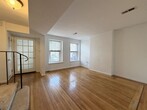 Charming 2 bedroom in brick row home on quiet tree lined street in great Journal Square neighborhood. Walk into the duplex unit which features a great size living area, large eat-in kitchen with stainless steel appliances and full-size bath. Beyond this is a laundry/office area that leads out to a well-manicured private backyard lined with lush trees for ultimate privacy. The second-floor features 2 large railroad style bedrooms. One room opening to the second through beautiful french doors. Perfect for large office or nursery! Gorgeous original hardwood floors and tons of natural light and central air conditioning complete the space. Access to basement area and outdoor shed makes for excellent additional storage. All this located close to transportation, shops and restaurants. Tenant pays utilities (gas/electric/heat/hot water). 1.5 security deposit.
