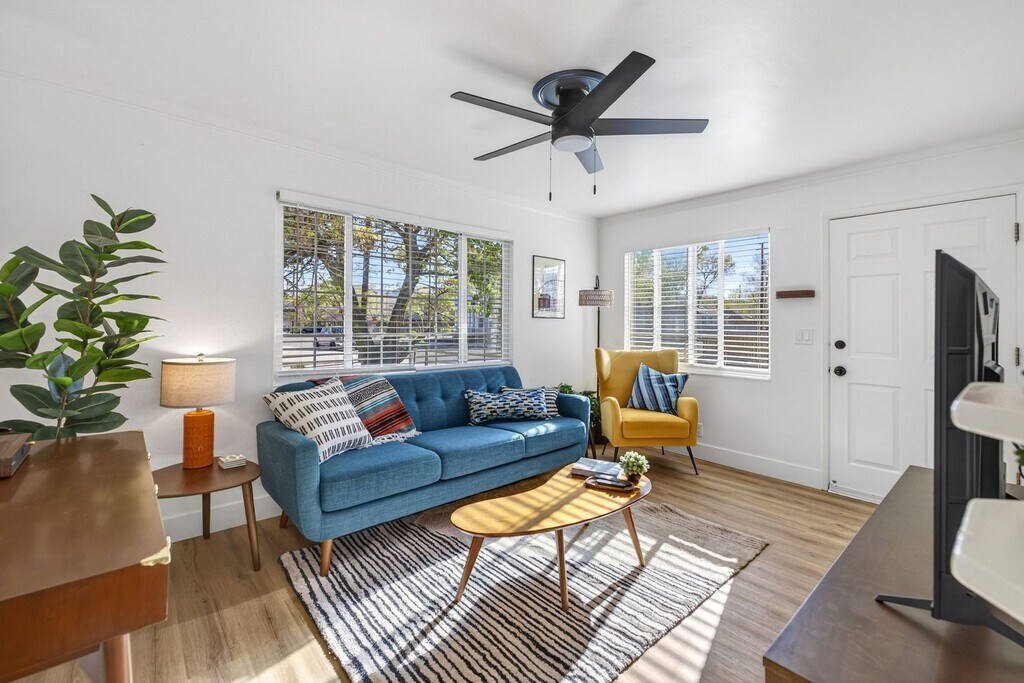 Welcome to your mid-century modern escape in the heart of Reno. Located at 70 & 80 Locust Street, this beautifully curated duplex features two private 1-bedroom, 1-bath residences—each offering an expansive 1,450 sq ft of fully furnished living space where no detail has been overlooked. Step inside and experience retro charm at its finest—an immersive blend of vintage design, historical memorabilia, and nostalgic touches inspired by “The Biggest Little City in the World.” Each unit has been thoughtfully designed to reflect Reno’s unique character, creating a stay that feels both stylish and deeply rooted in local history. Perfectly situated, you’ll find yourself within walking distance to local favorites, with even more dining, shopping, and entertainment options just a quick 15-minute drive away. From morning coffee spots to iconic Reno attractions, everything you need is within easy reach. All utilities are included for a seamless stay, along with high-speed WiFi and convenient in-unit laundry in each unit. You’ll also find curated local recommendations to help you explore the best of Reno like a local. Whether you’re booking one residence or both, guests can enjoy privacy and comfort alongside a cohesive, design-forward experience. Available for stays ranging from 3 nights to 90 days, this highly sought-after, Instagram-worthy duplex is ideal for vacations, work trips, relocations between homes, or an inspiring media space for creatives. Come as you are, stay, and explore. The Biggest Little BnB welcomes you home to experience Reno in a way that’s both timeless and unforgettable!