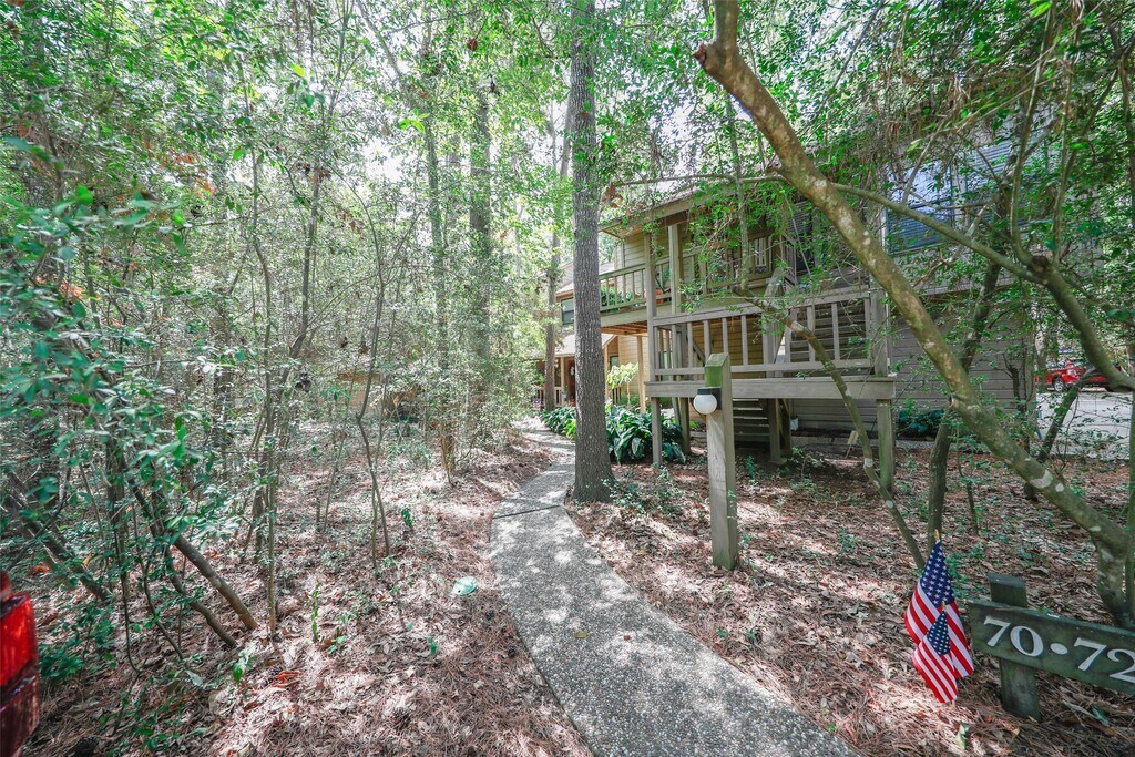 Beautifully updated 3-bed,2.5-bath townhome with primary suite down. Soaring ceilings and a dramatic wall of windows with 2" plantation shutters flood the open living,dining,and gourmet kitchen with light. Home has open flow from kitchen to family room to dining area - perfect for entertaining! Kitchen has beautiful granite counters,custom cabinets,and includes appliances. Relax on the covered porch and tree-shaded deck—your private retreat with birdsong all around! Prime location with The Woodlands schools and shopping district just minutes away. Come see this hidden gem and make it your own secret refuge inside The Woodlands that you call home! MLS# 28458363