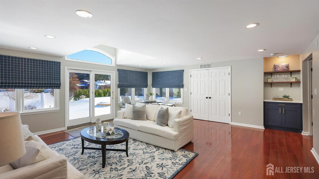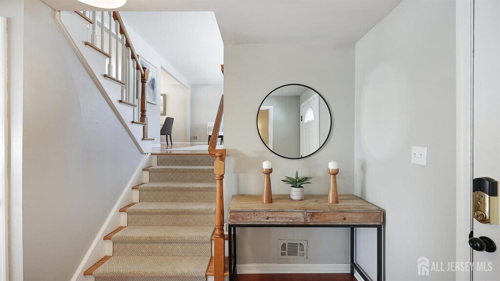 Beautifully updated and thoughtfully designed home for rent offering exceptional space,flow,and indoor-outdoor living. A welcoming entry foyer with a powder room opens to an oversized family room with backyard views perfect for everyday living and entertaining. A short flight of stairs leads to the main living level where the living room,dining room,and renovated kitchen connect seamlessly,creating a bright,open-concept space ideal for gatherings. The kitchen features quartz countertops,a center island,and black stainless steel appliances. Custom built-in shades throughout add to the home's polished feel. The next level offers a versatile open office area,two well-sized bedrooms,and a full hall bath. The upper level features a spacious primary bedroom with a sitting area and custom built-ins,along with an additional bedroom and full bath. The partially finished basement provides flexible bonus space for recreation,a home gym,or storage. Outside,the backyard features a patio,fire pit area,and grassy space ideal for summer entertaining and relaxing evenings at home. With a one-car attached garage,generous square footage,and a layout that lives large,this home offers comfort,style,and lifestyle in a sought-after Metuchen neighborhood.Lawn Maintenance is included. Conveniently located close to Metuchen's award-winning Main Street,transportation,schools,and shopping. If you want to use the pool,that is an option for additional rental cost per month. Pool is not included in the rent of $4750 per month however if tenant wants pool access it is be $5,000 per month.