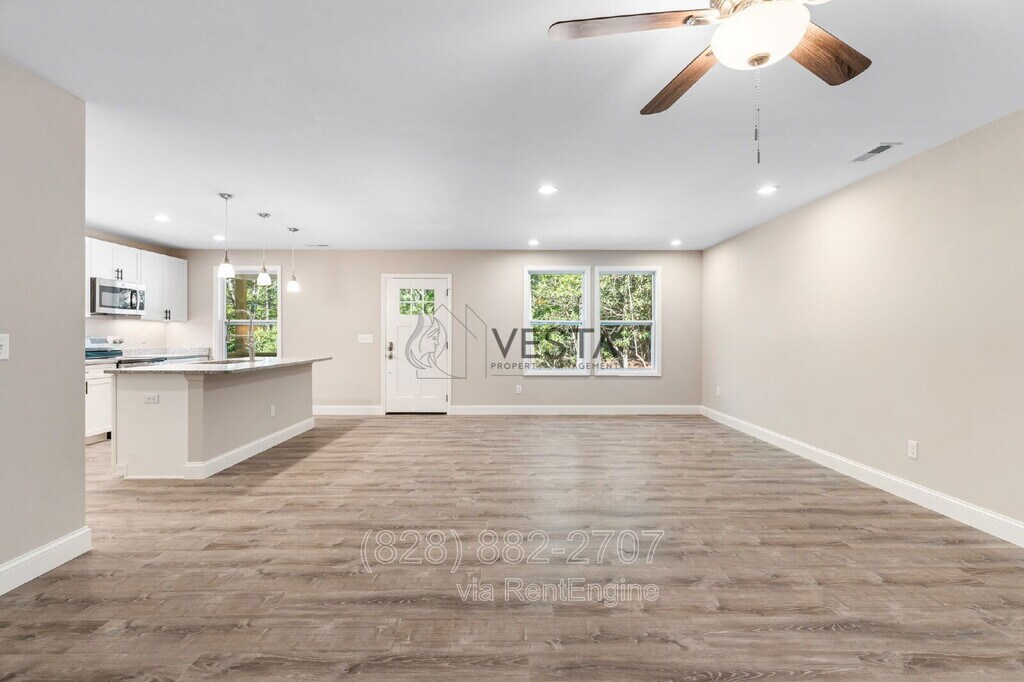 This newly built 3-bedroom, 2-bathroom home offers clean, modern living with a quiet, tucked-away feel in Etowah. Located just minutes from Mills River Brewing, Blue Ridge Pizza, and a quick drive to Hendersonville or Brevard, this home is perfect for someone looking to enjoy mountain living without sacrificing convenience. Step inside to an open floor plan filled with natural light. The kitchen includes granite countertops, stainless steel appliances, soft-close cabinetry, and a large island—perfect for cooking and gathering. Durable luxury vinyl plank flooring runs throughout, and the primary suite features a tiled walk-in shower, double vanity, and spacious walk-in closet. Outside, enjoy both a covered front porch and a large back deck, plus a fenced-in backyard that’s ideal for pets, play, or gardening. Home Features --> Brand new construction (never lived in) --> 3 bedrooms / 2 bathrooms --> Open concept layout with large kitchen island --> Luxury vinyl plank & tile floors --> Granite counters & stainless appliances --> Large primary suite w/ dual vanity and walk-in closet --> Central heat and air (heat pump) Outdoor & Lot Details --> Fenced-in yard! (coming soon) --> Covered front porch and spacious back deck --> Private, natural setting with room to relax --> Gravel driveway with ample parking Utilities & Lease Info --> Water: Well --> Sewer: Septic --> Lawn care: Tenant is responsible --> Washer/dryer hookups available (machines not included) --> High-speed internet available --> Pets considered case-by-case (fees apply) --> 12-month minimum lease --> Available now Located at 70 Erwin Hill Dr., Etowah – a quiet street just minutes from hiking, breweries, parks, and more. Professionally managed by Vesta Property Management Apply today at or call . Showing, Application, and Screening Process Request a Showing: Submit a showing request at /homes-for-rent. Apply Online: After viewing, complete your application through our website only. Each adult must apply separately. Application Fee: $58 per applicant (non-refundable) — includes credit and background checks. Pets: If you have a pet, complete a separate pet application at Additional fees may apply. No other animals allowed. Need Help? We can text you the official application link upon request. Questions? Call or text or email support@ By submitting your information on this page you consent to being contacted by the Property Manager and RentEngine via SMS, phone, or email.