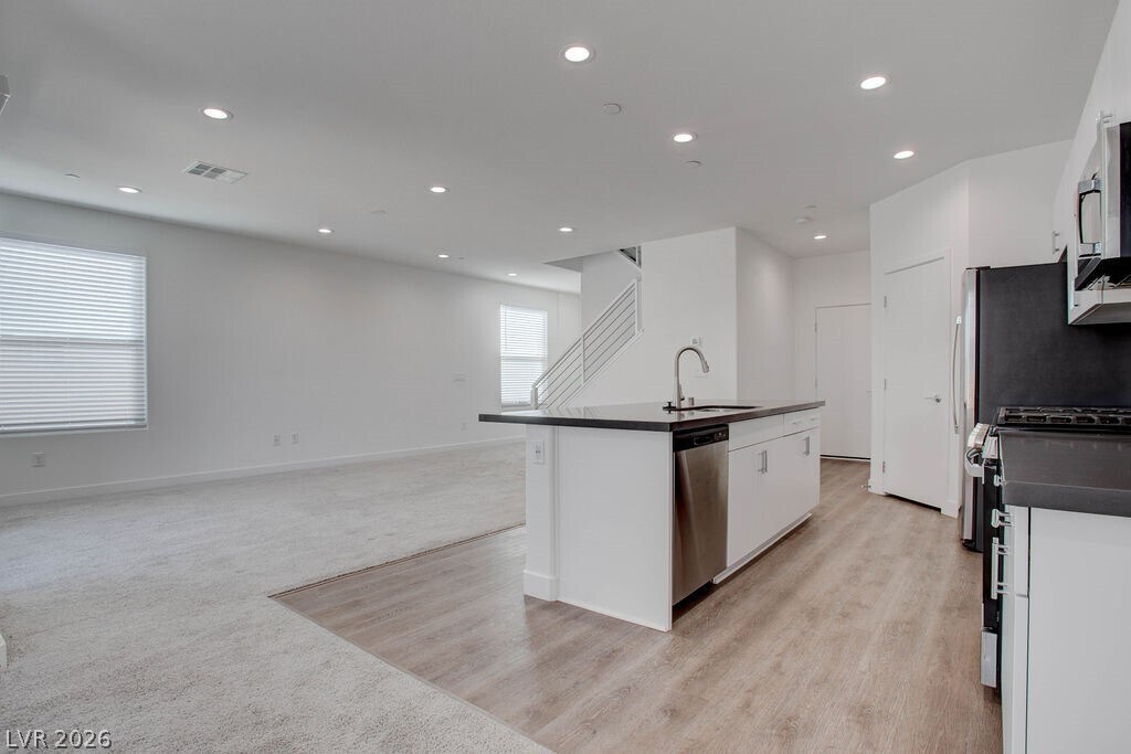 Well-maintained 3-bedroom home with a 2-car garage and access to a community pool and spa. This home features a spacious living room, dining area, and an upstairs loft that can be used as a second living space, office, or play area. The kitchen is equipped with an island, recessed lighting, stainless steel appliances and sink, a pantry, and a refrigerator with ice maker—perfect for everyday convenience. The primary bedroom includes a ceiling fan with light, while the primary bathroom offers a walk-in closet and dual vanity sinks. All bedrooms feature ceiling fans for added comfort. The laundry room is conveniently located upstairs near the bedrooms. All appliances are included, making this home move-in ready. Enjoy comfortable living with great community amenities in a desirable location.
