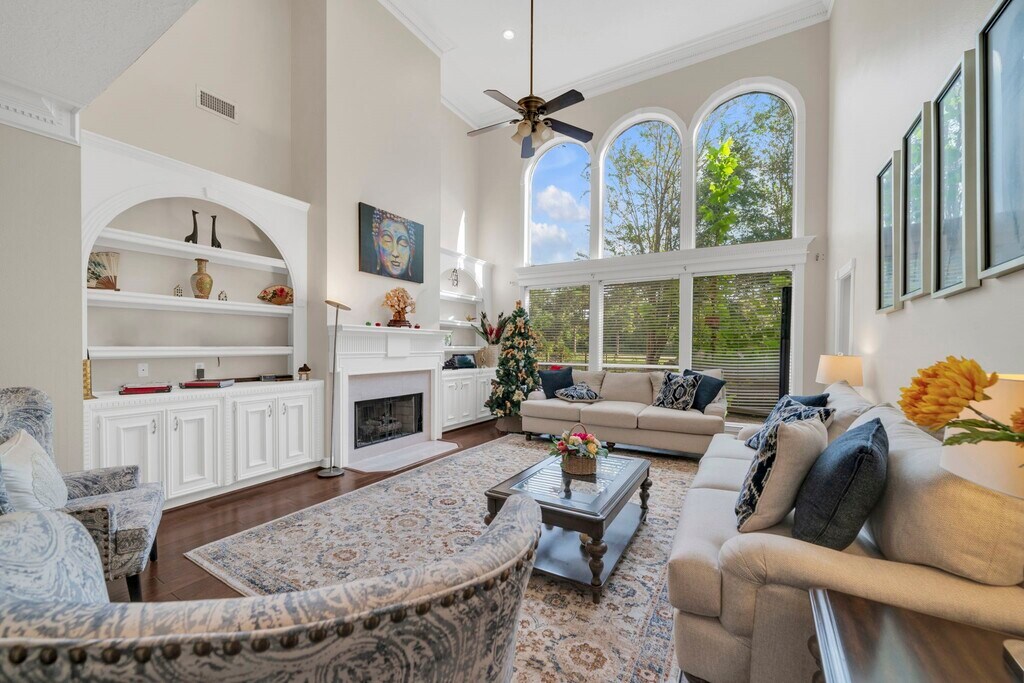 Discover this stunning custom home backing to The Golf Trails at The Woodlands,perfectly situated on a quiet cul-de-sac in the heart of The Woodlands. Zoned to top-rated schools and close to parks,shopping,and dining,this property offers both convenience and luxury. Inside,you’ll find soaring ceilings,rich hardwood floors,a dramatic sweeping staircase,plantation shutters,crown molding,and walls of windows that fill the home with natural light. The island kitchen features stainless steel appliances,granite countertops,and a breakfast bar that opens to a casual dining area and a family room with a cozy gas log fireplace. Formal living and dining rooms,a paneled study,provide elegance and functionality. The primary suite is tucked away downstairs for privacy,while upstairs offers three spacious bedrooms and a large media room with balcony access. Step outside to your private backyard oasis featuring a sparkling pool with a rock waterfall,spa,and a covered patio. MLS# 16433050