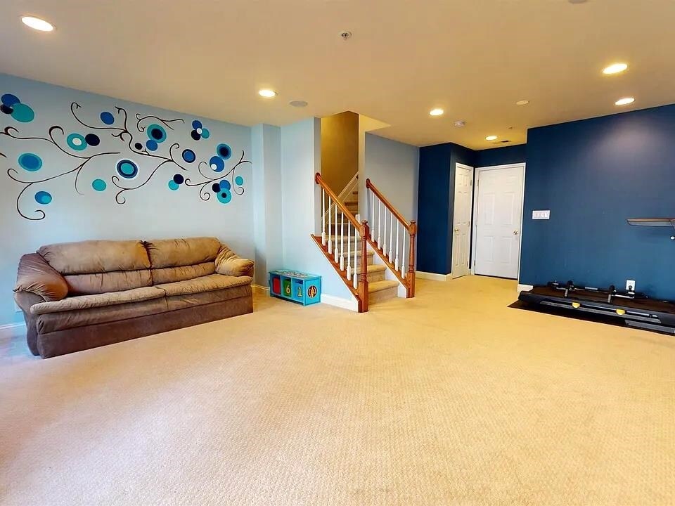 Beautiful, spacious townhouse in Riverside Court with 1945 sq ft of interior space (Gramercy model), this 2 bedroom/2.5 bath with a finished basement, and private garage has it all. The first floor features an open floor plan with hardwood floors throughout, living room, dining room, new carpet in both bedrooms, and a gourmet Eat-in kitchen with granite countertops, stainless steel appliances (New dishwasher & Gas/ Oven), center island, 10 ft ceilings, recessed lighting, corner gas burning fireplace & terrace. Top floor features a large Master bedroom suite w/ cathedral ceilings that boasts 2 His/ Her walk-in closets, luxurious oversized bathroom with double sinks, soaking tub, separate standing shower & balcony. Guest bedroom, Guest bathroom & a separate Full sized Washer dryer/ laundry completes the second level. The walk-out ground floor provides an over-sized family room ideal for entertaining, large enough for a home theatre & and access to the one car garage, Driveway Parking & glass slider to Outdoor Patio/ grilling area & yard. The garage features a separate large storage area & enters directly into the family room level! Central Air, New blinds in multiple windows, Nest thermostat! Complex features an outdoor pool & seamless travel around the neighborhood and into Manhattan, Enjoy the walks along the Hackensack River, Express bus service at Front Gate to New York City Plus commuter bus to Secaucus train station. All of this is just 20 minutes or less to NYC, Newark Airport, MetLife Stadium and the American Dream Mall. A commuter’s dream! This unit is a must see! Available 07/01. Credit/background check required.