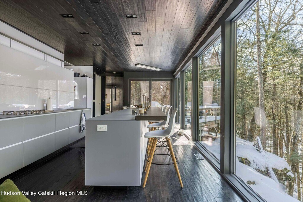 Welcome to a home where contemporary elegance seamlessly blends with the tranquil beauty of nature. Nestled among lush greenery and towering pines,this stunning residence,worthy of features in top architectural publications,offers an unmatched living experience. At the end of a quiet,winding drive,this property reveals breathtaking views of a dramatic wooded hillside cascading down to a serene,flowing stream. Unique features such as the glass-walled container pool and the year-round hot tub make this property truly one-of-a-kind. The principal residence is designed to bring the outdoors in,with expansive windows framing the picturesque hillside and four private decks overlooking the year-round stream that has dramatic lighting for evenings. The open floor plan connects the great room,kitchen,and dining area,all leading to a deck that immerses you in the beauty of the woods and the gentle sound of water below. The main bedroom suite,positioned for ultimate privacy,offers direct access to these serene outdoor spaces,ensuring a tranquil and peaceful living experience. A charming one-bedroom guest house provides a comfortable and private haven for all your visiting guests. The separate pool cabana offers an extraordinary retreat with a unique glass-walled container pool,adding a playful yet sophisticated touch to your outdoor living experience. Adjacent to the pool,a year-round hot tub invites you to relax and unwind beneath the sun or stars,ensuring your comfort and relaxation. For those with creative pursuits,the versatile garage space currently serves as an artist studio and gym but can easily be transformed into additional living space. Beyond the garage,a secluded garden basks in sunlight,perfect for cultivating herbs,flowers,or vegetables,providing the perfect backdrop for your creative endeavors. This property is more than just a home a sanctuary where modern design harmonizes with nature,offering a lifestyle of luxury,comfort,and peace. Available as a month to month,seasonal,or yearly rental.