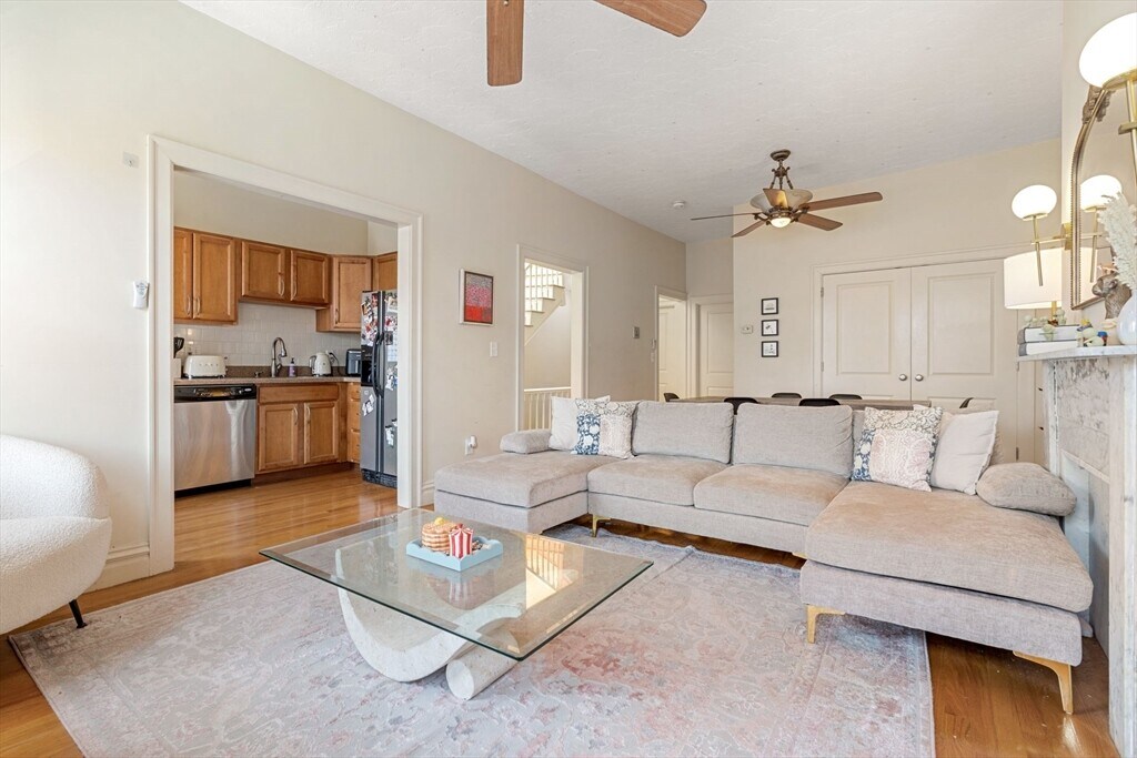 AVAIL 6/1: oversized penthouse duplex on beloved Rutland St in the South End with 3 large bedrooms,outdoor space,hardwood floors,high ceilings,gas cooking,laundry in bldg & on-site parking for rent! Enter to large living area with decorative fireplace,treetop views & plenty of room for dining table or WFH set-up. Bright,efficient kitchen has stainless steel appliances. Also on this level: full bath w tub and a sunny rear-facing bedroom. Skylit staircase leads to top floor with 2.5 bedrooms and 2nd full bath w skylight & tub. 2 of 3 bedrooms easily fit king beds,3rd easily fits queen. Bonus room upstairs makes a great home office,guest space,home gym or storage area (no closet/not a bedroom). Additional features: common laundry downstairs,tons of closets/storage throughout,2 unique outdoor spaces (a fenced yard with patio and a tiered garden with multiple lounge areas). A+ location moments from Toro,SRV,Flour & more. Direct access parking avail for $300/mo (not included). MLS# 73500672
