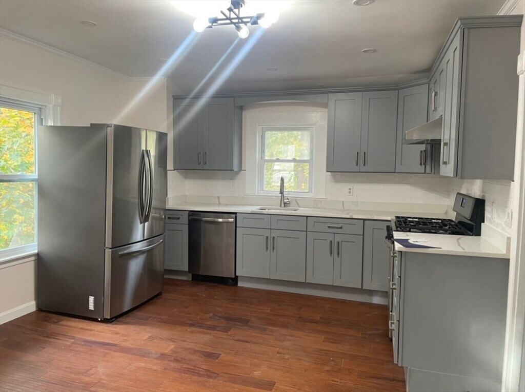 New Renovated 3 Bedrooms apartment on side by side of two family in Quincy center. extra room in partially finished basement. Hardwood floors throughout,eat-in kitchen,walked out partially finished basement and Hookup in the basement,deck,Big back yard. 0.8 mile to Quincy center station. close to all the nice Quincy restaurants and shops,move in ready. new stove,new refrigerator,and dishwater etc. Need credit report and pay stubs to show qualification. No smoking,No dogs. photos are from previous listing MLS# 73444237