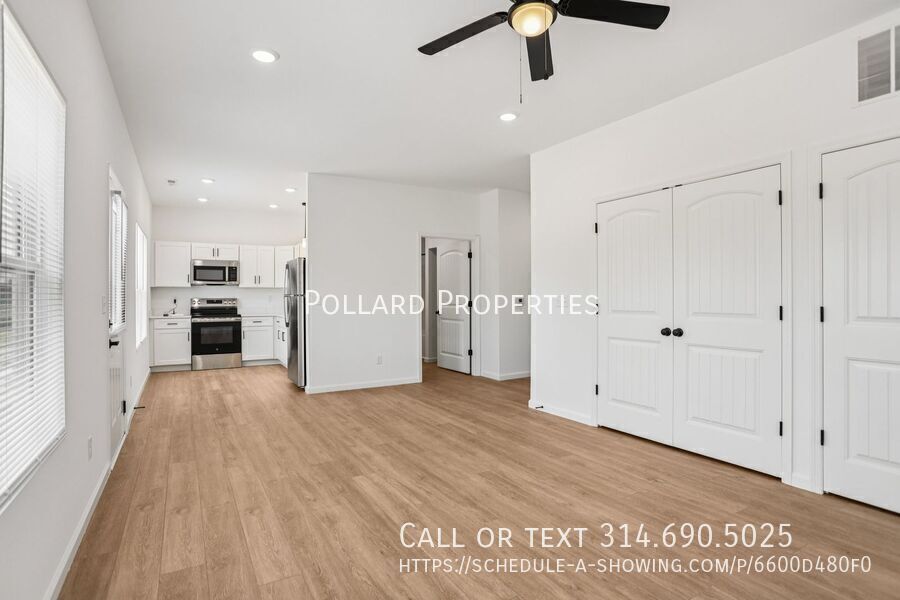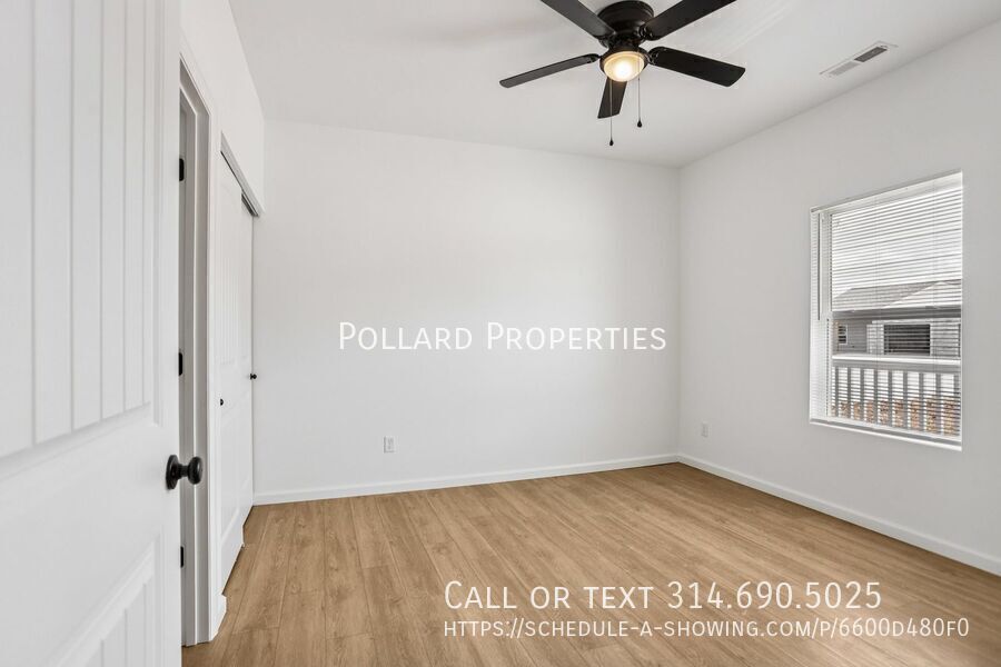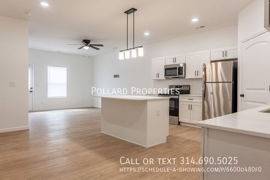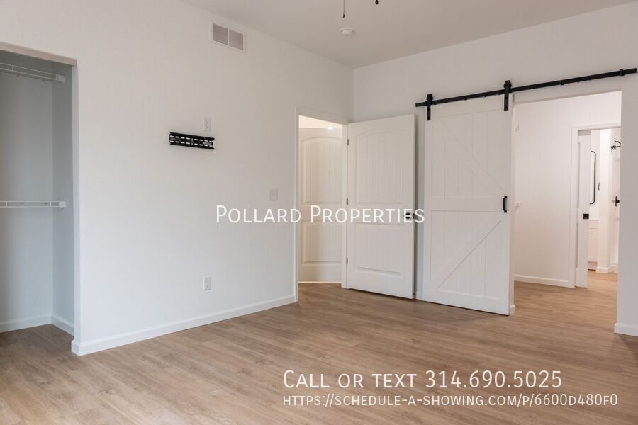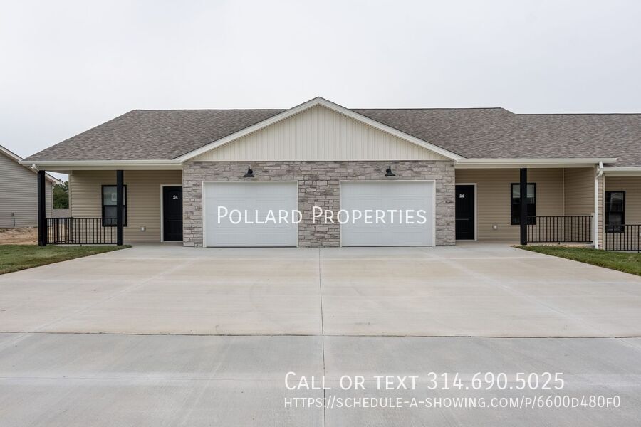 NEW RENT SPECIAL! Hurry, Limited-Time Move-In Special! Move in by February 26, 2026 and do a 15 month lease to enjoy a $2,000 rent credit as our welcome gift to you. Don't miss out on this stacked special—find your new home and treat yourself! Apply today and start packing! Experience the perfect blend of upscale comfort and modern convenience at Boulders of Moscow Mills! This brand-new villa offers 825 sq. ft. of beautifully designed living space—crafted for those who appreciate open layouts, stylish finishes, and room to breathe! Villa Highlights: -A spacious bedrooms and a thoughtfully designed bathroom -Attached garage with private entry—secure, convenient, and weather-proof -Large private patio—ideal for morning coffee, evening cocktails, or entertaining guests -Beautiful barn door accent—adds charm and a modern touch -Generous walk-in closet with plenty of storage space -Expansive patio with green space—perfect for pets, gardening, or simply enjoying your own outdoor retreat Interior Features: -Granite countertops and luxury vinyl plank flooring throughout -Soaring 9-foot ceilings for an open, airy feel -Fully equipped kitchen with stainless steel appliances -In-unit washer and dryer provided—no more laundromats or shared spaces -Additional linen closet to keep everything organized Community Amenities: -Scenic lake views and peaceful surroundings! -Expansive green spaces and pavilion areas for relaxing or gathering! -Pet-friendly community—your furry friends are welcome! Prime Moscow Mills Location: -Minutes from shopping, dining, and major highways for an easy, stress-free commute! Additional Costs to Move In & Monthly Charges: Security Deposit: $2,587.50, Move-In Charge: $517.50, a monthly $5.00 pest control fee, monthly $30.00 pet rent (max 2 pets) Utilities: Residents are responsible for electricity in their name. Trash is included in rent and water/sewer usage is added with rent each month. Call or visit our website to schedule a tour today! or Driveway Ground Floor Large Backyard Lvp Flooring Pet Friendly Trash Central Location Driveway Green Space Ground Floor Lvp Flooring Pavilion Pet Friendly Stainless Steel Appliences Tv Mounts Provided