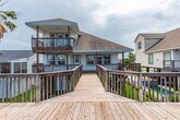 Lovely 3-2.5-1 Canal Front Tri Level home built in 2006 with Boat House,Party Deck and Catwalk in Beautiful Bayou Vista for Lease. New roof May 2025. Open Living,Dining and Kitchen. High Ceilings in Living Room and Primary Bedroom. Kitchen has Granite Counters,Stainless Appliances,Gas Stove,Custom Cabinets,Pantry and Breakfast bar. Tile and Laminate Floors. Large Primary Bedroom is on 3rd level with Executive Primary Bath,Walk-In Closet,Private covered Deck and Incredible Views. Primary Bath has custom marble like vanity with double sinks,soaking tub,Separate shower and glass block window. Simonton low "E" vinyl windows. 2x6 exterior walls. 12 Seer Lenox AC unit.2nd and 3rd level have a covered deck. Breezeway. Laundry Room is in the home. Dock your boat in the boat house. Enjoy relaxing evenings watching amazing sunsets from your decks. Easy access to Jones Lake and Galveston Bay. Gulf-fish and crabbing from your own front yard. All measurements are approximate. MLS# 68115847